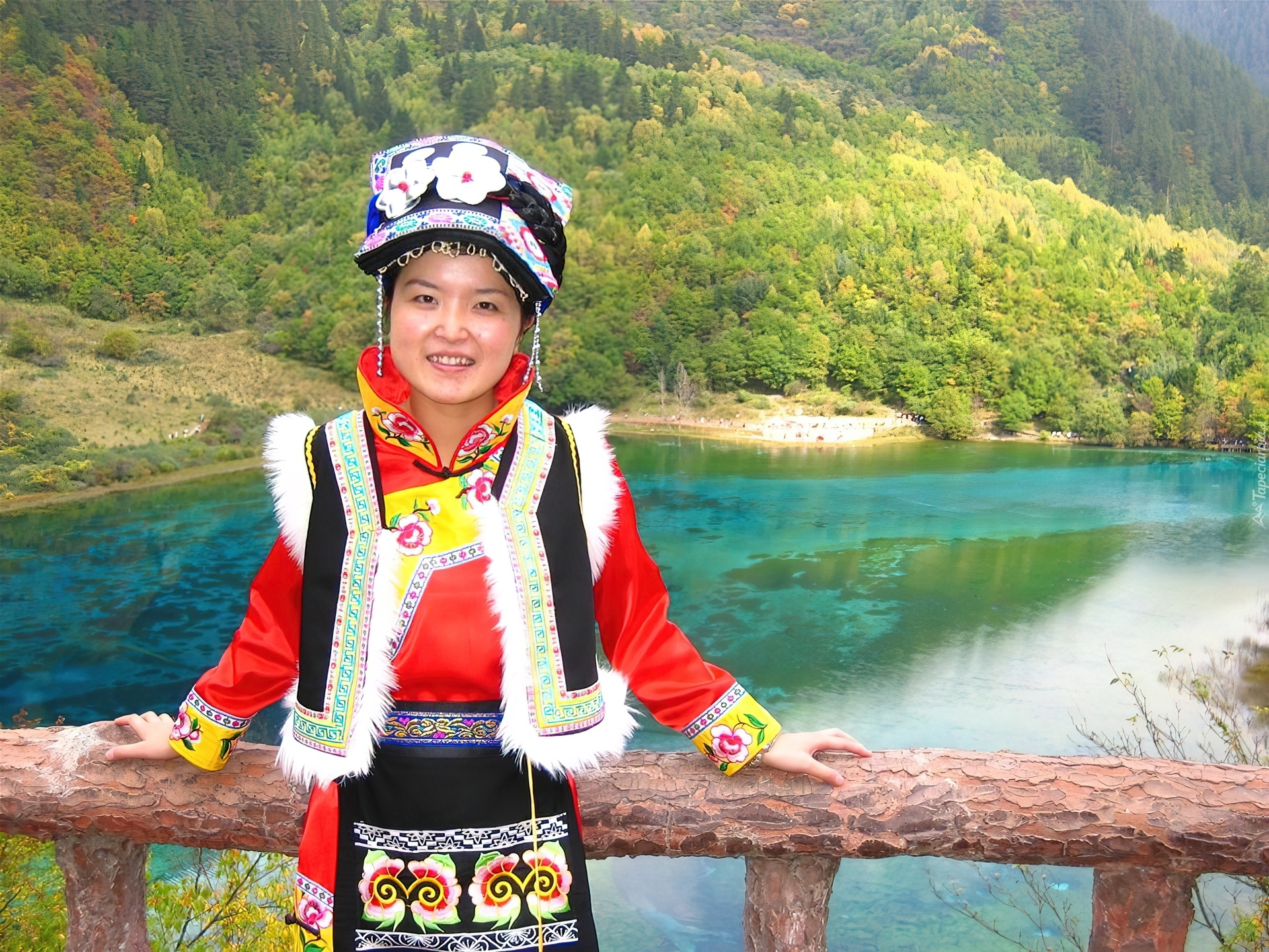 Edytor tapety: Dziewczynka, Chinka, Jezioro, Góry, Chiny
