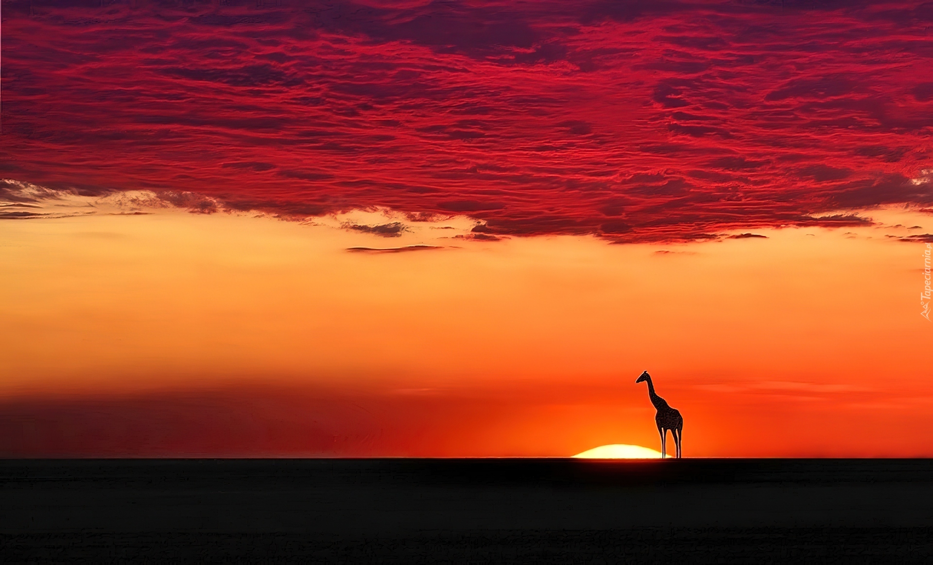Edytor tapety: Żyrafa, Zachód, Słońca