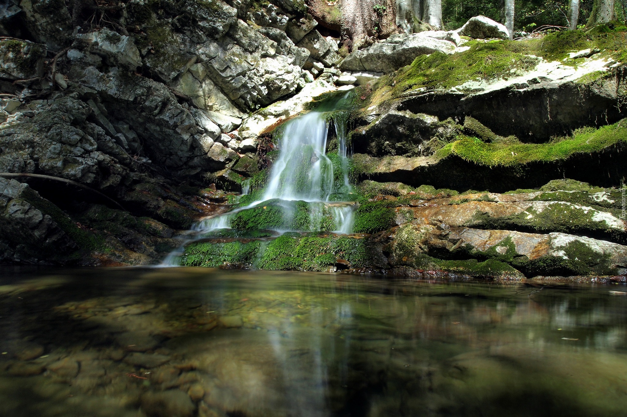 Edytor tapety: Wodospad, Skały, Roślinność
