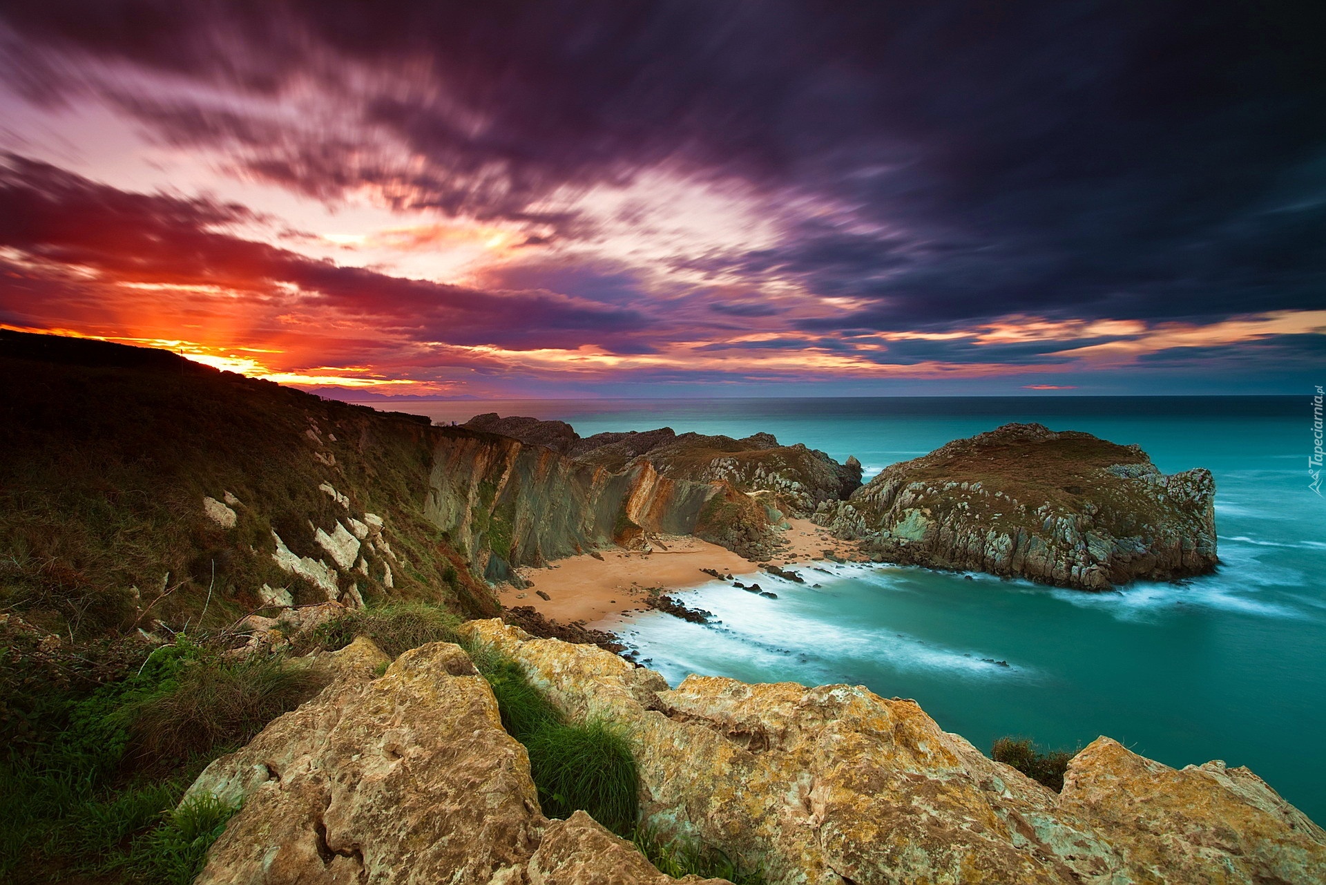 Edytor tapety: Morze, Zachód, Skały, Horyzont