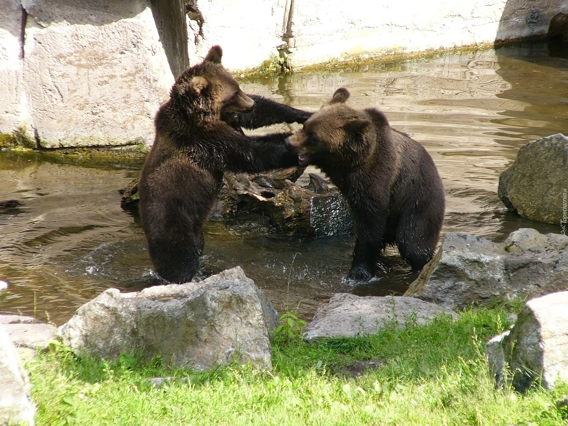 Edytor tapety: Dwa, Niedźwiadki, Rzeka, Kamienie
