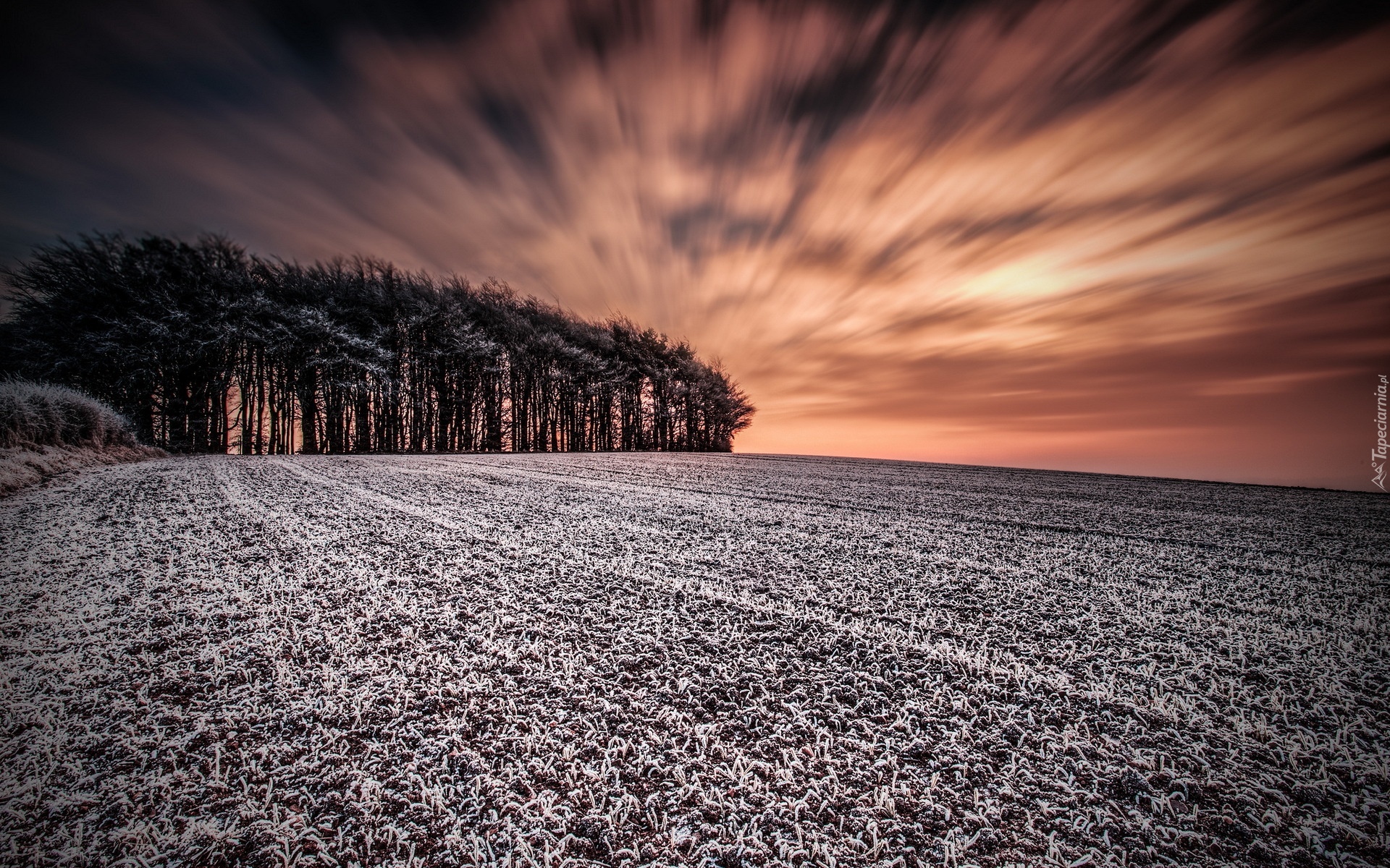 Edytor tapety: Zachód, Słońca, Las, Zima