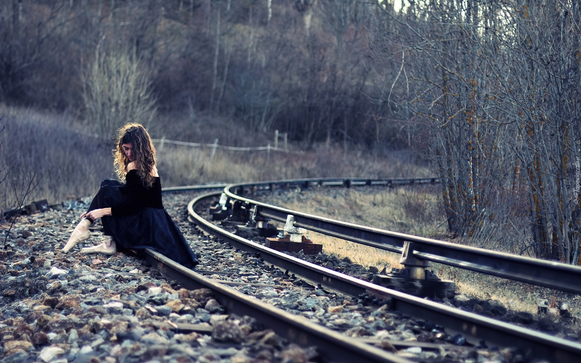Edytor tapety: Kobieta, Tory, Kamienie, Drzewa