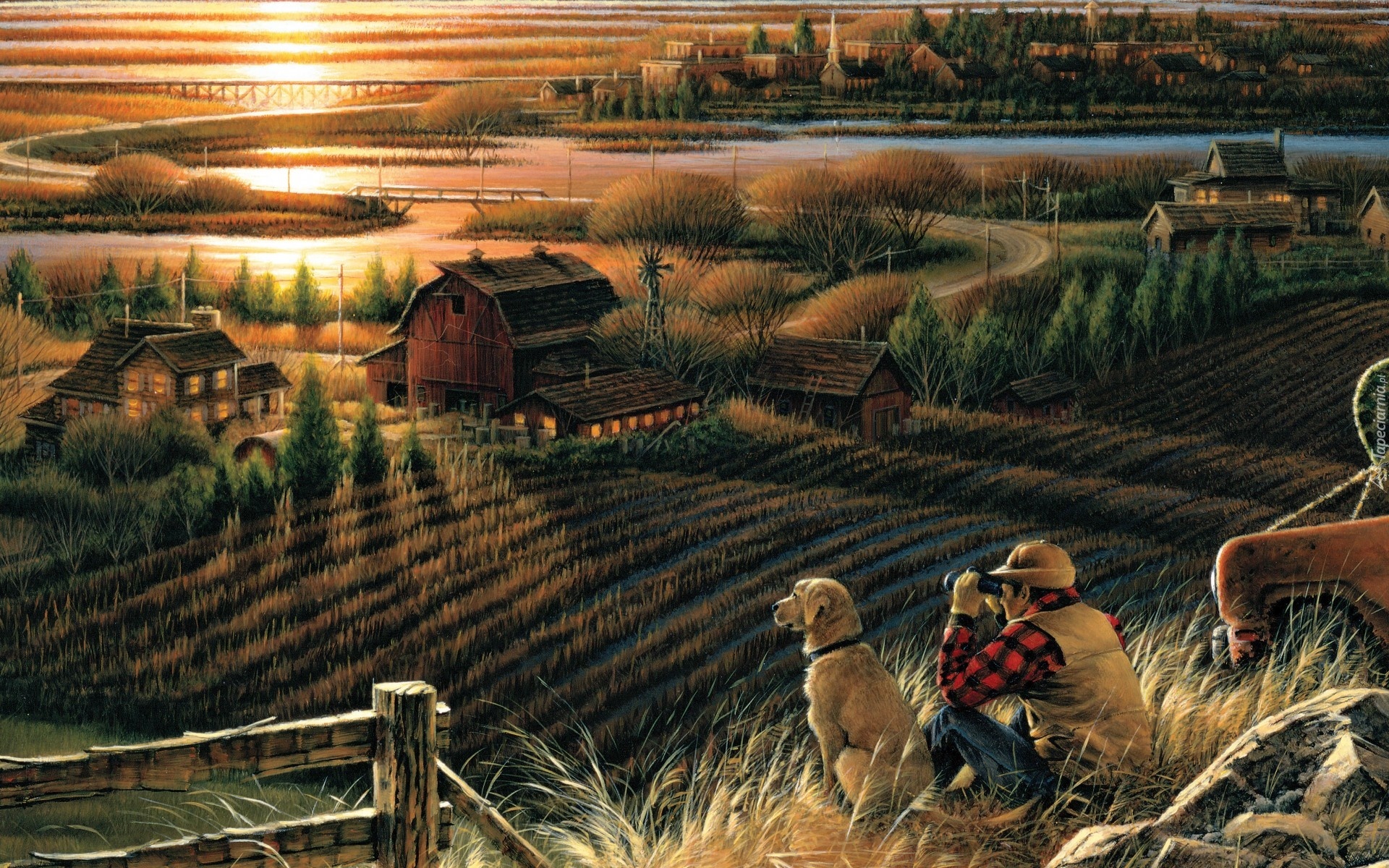Edytor tapety: Obraz, Mężczyzna, Pies, Pole