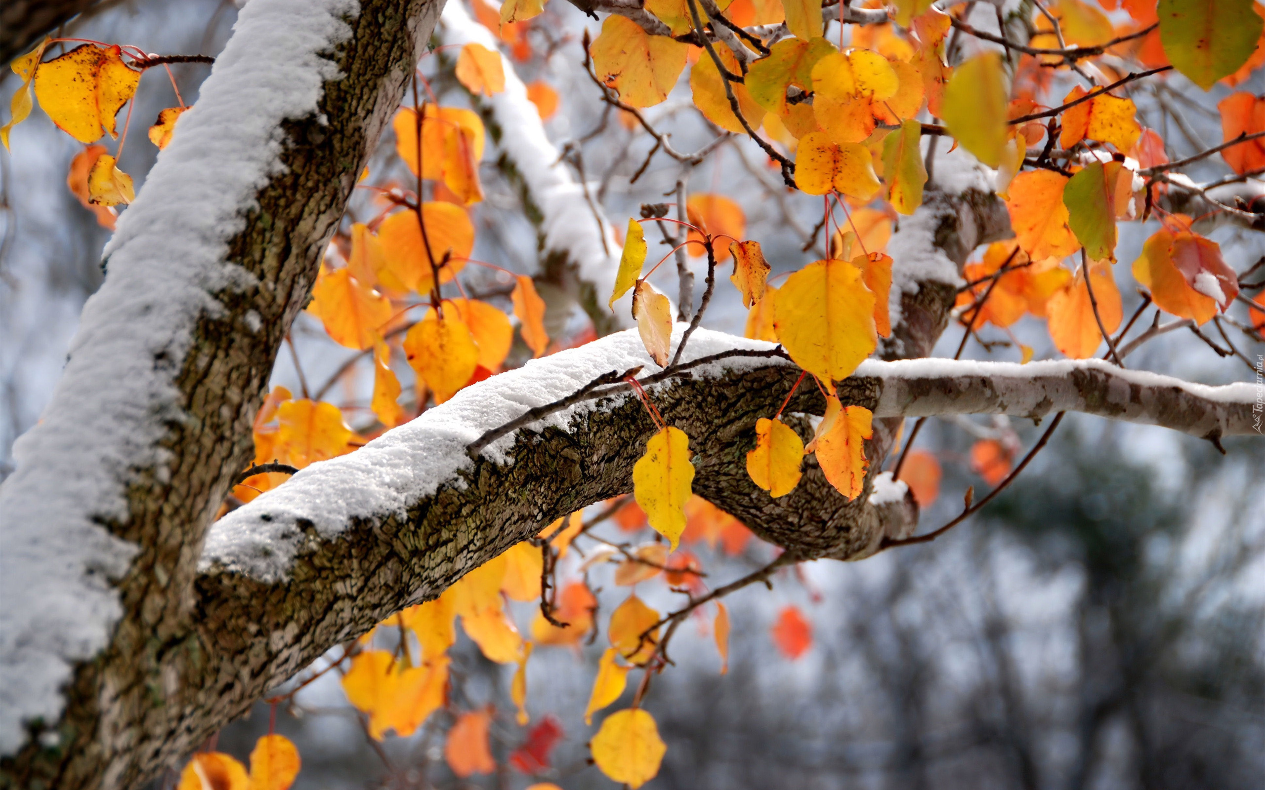 Edytor tapety: Liście, Drzewo, Jesień, Zima, Śnieg