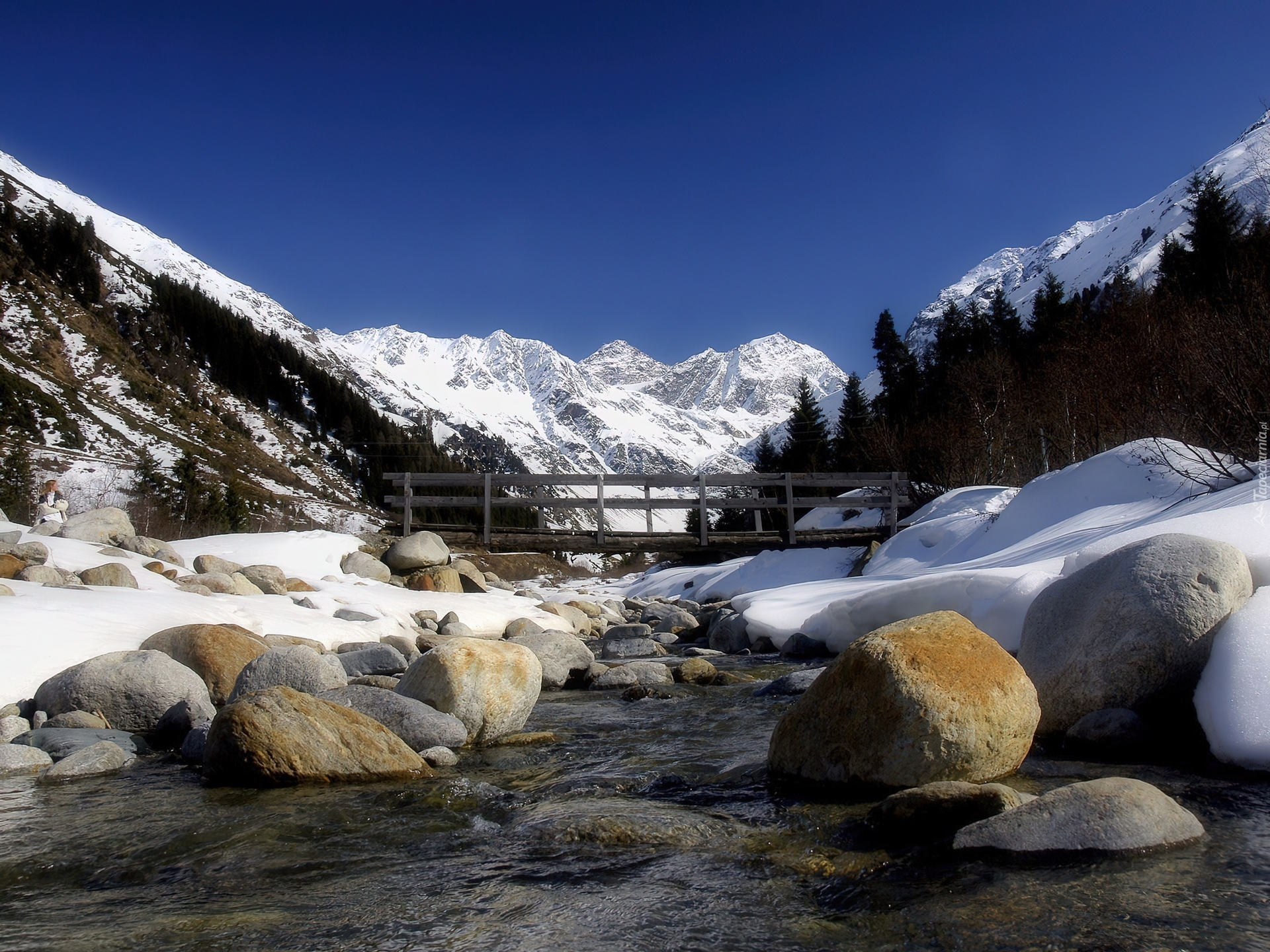 Edytor tapety: Góry, Mostek, Potok, Kamienie