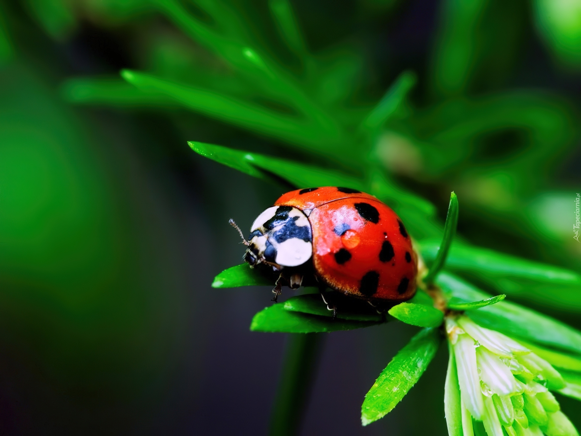 Edytor tapety: Biedronka, Zielone, Liście