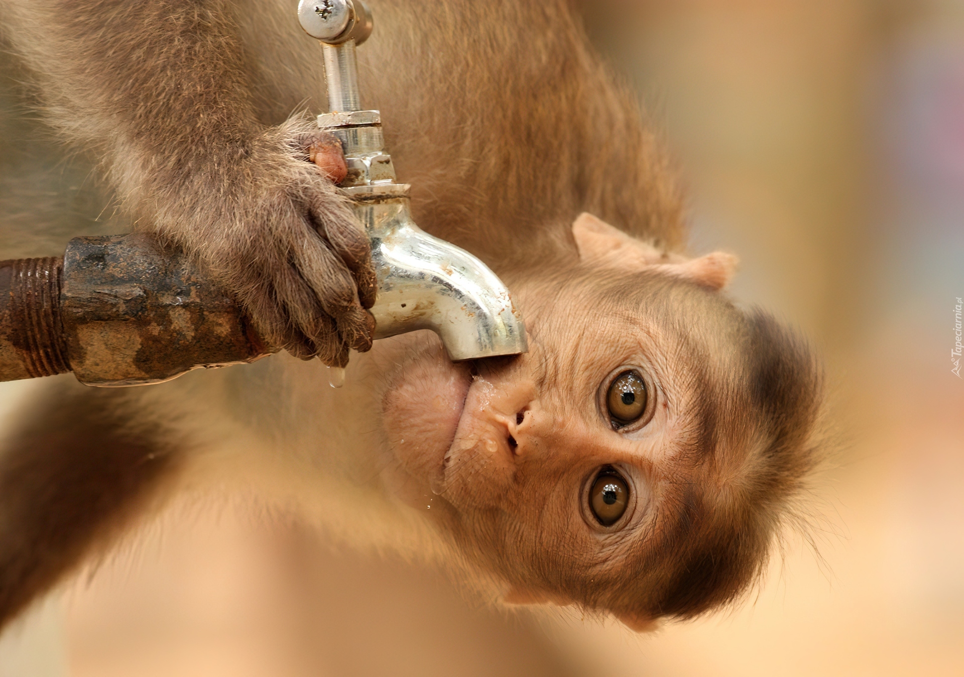 Edytor tapety: Spragniona, Małpka, Kran