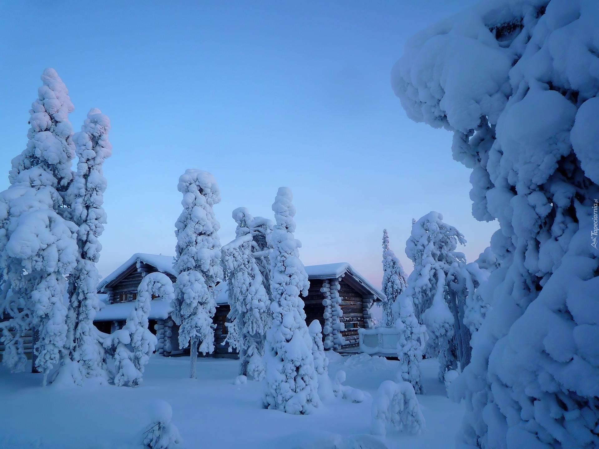 Edytor tapety: Zima, Ośnieżone, Drzewa, Domek