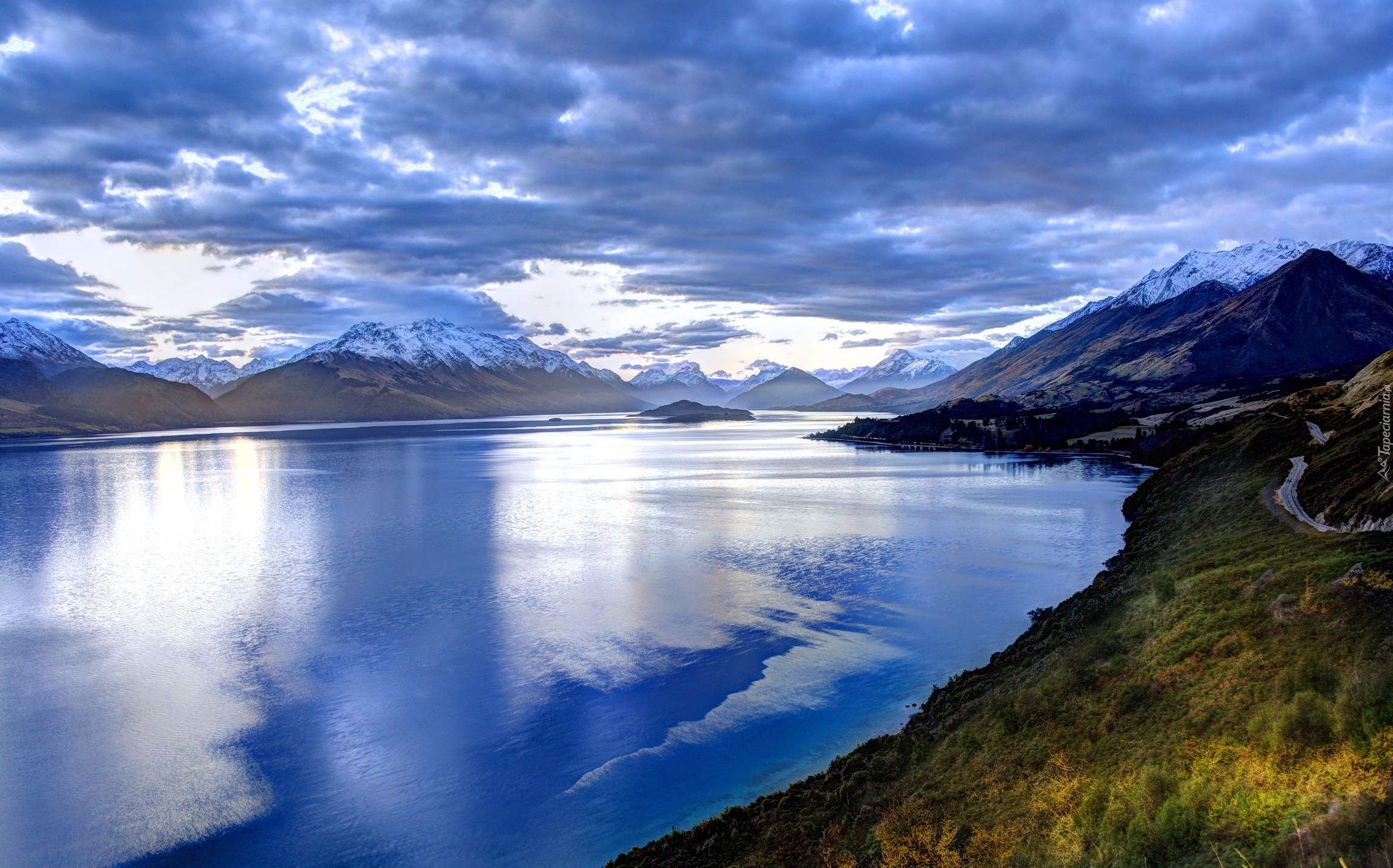 Edytor tapety: Rzeka, Góry, Chmury