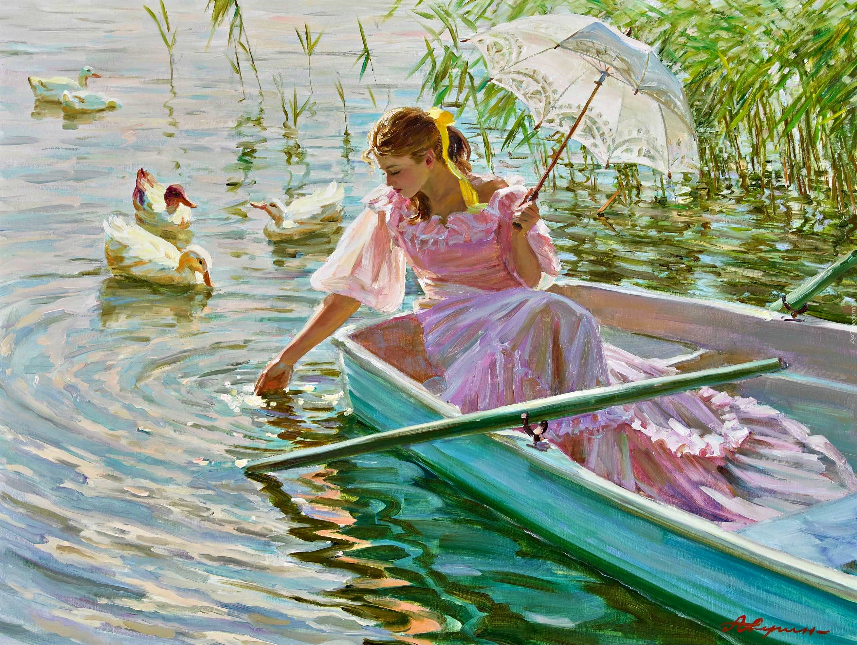 Edytor tapety: Aleksandr Averin, Malarstwo, Lato, Łódka, Kobieta