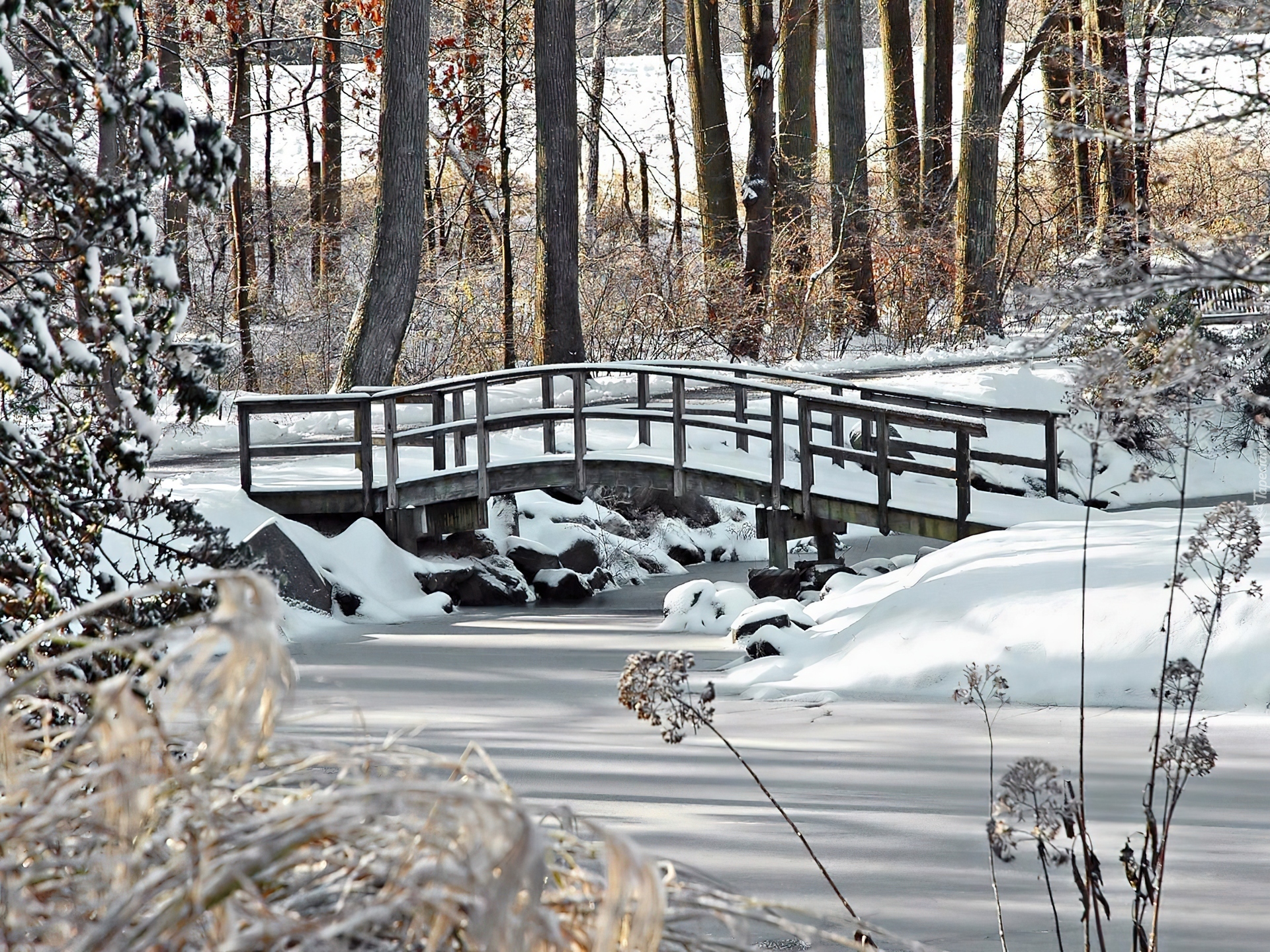 Edytor tapety: Zima, Zamarznięta, Rzeczka, Mostek