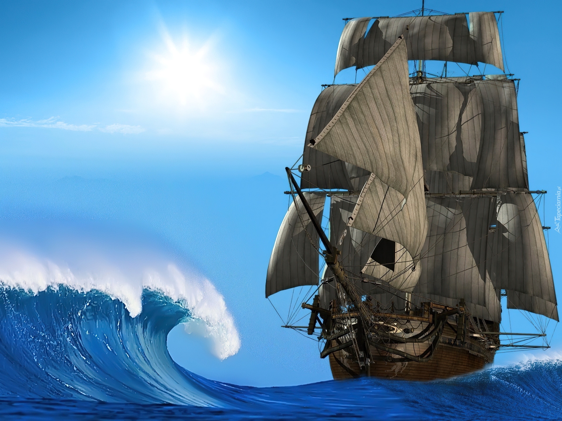 Edytor tapety: Żaglowiec, Słońce, Fala