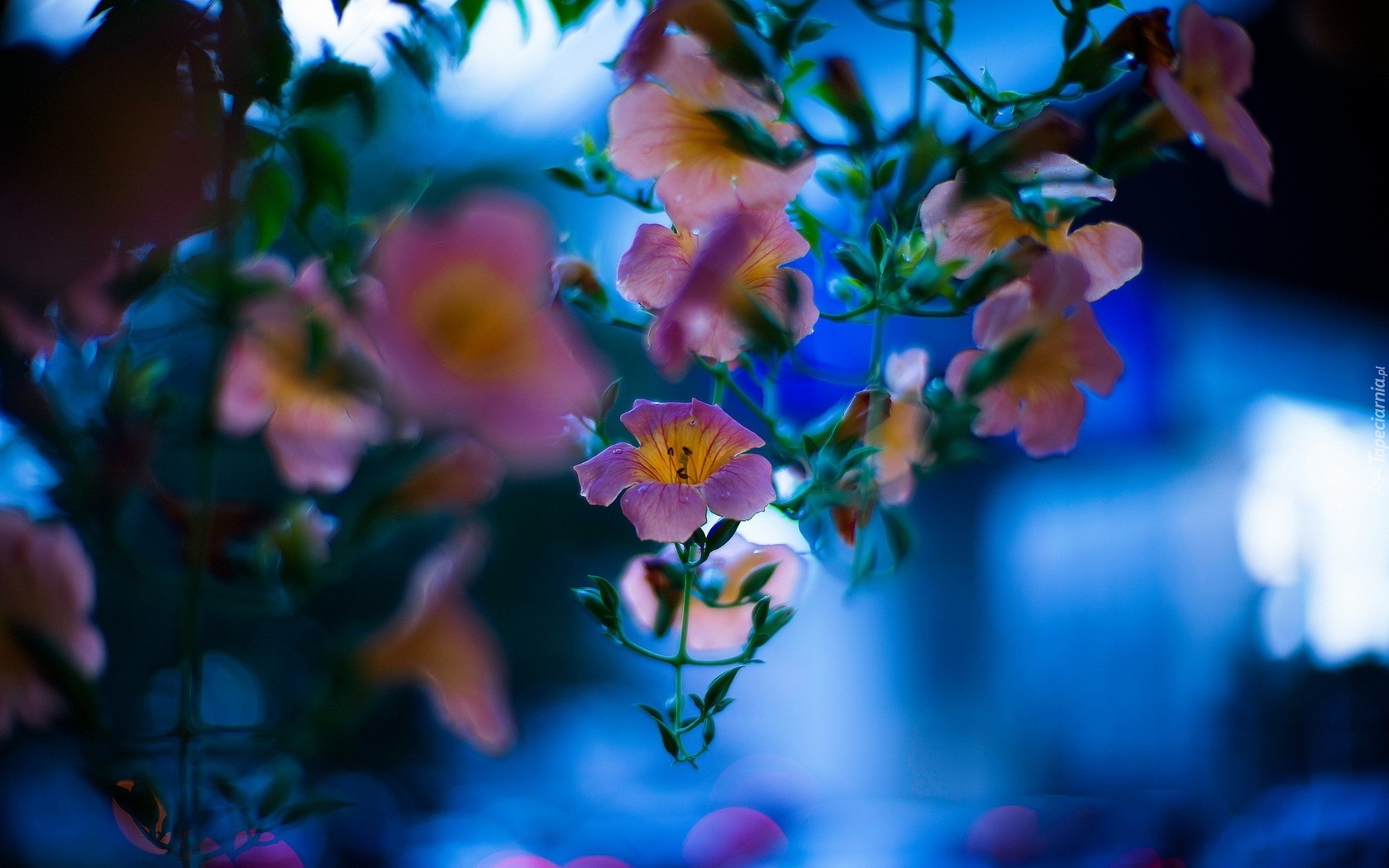 Edytor tapety: Różowe, Kwiatuszki, Niebieskie, Tło