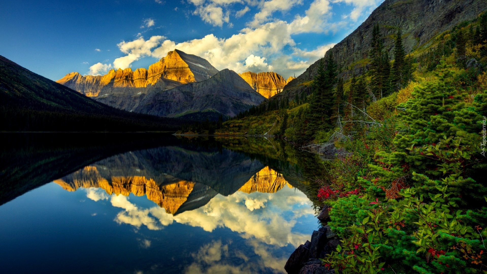 Edytor tapety: Góry, Jezioro, Odbicie, Lustrzane