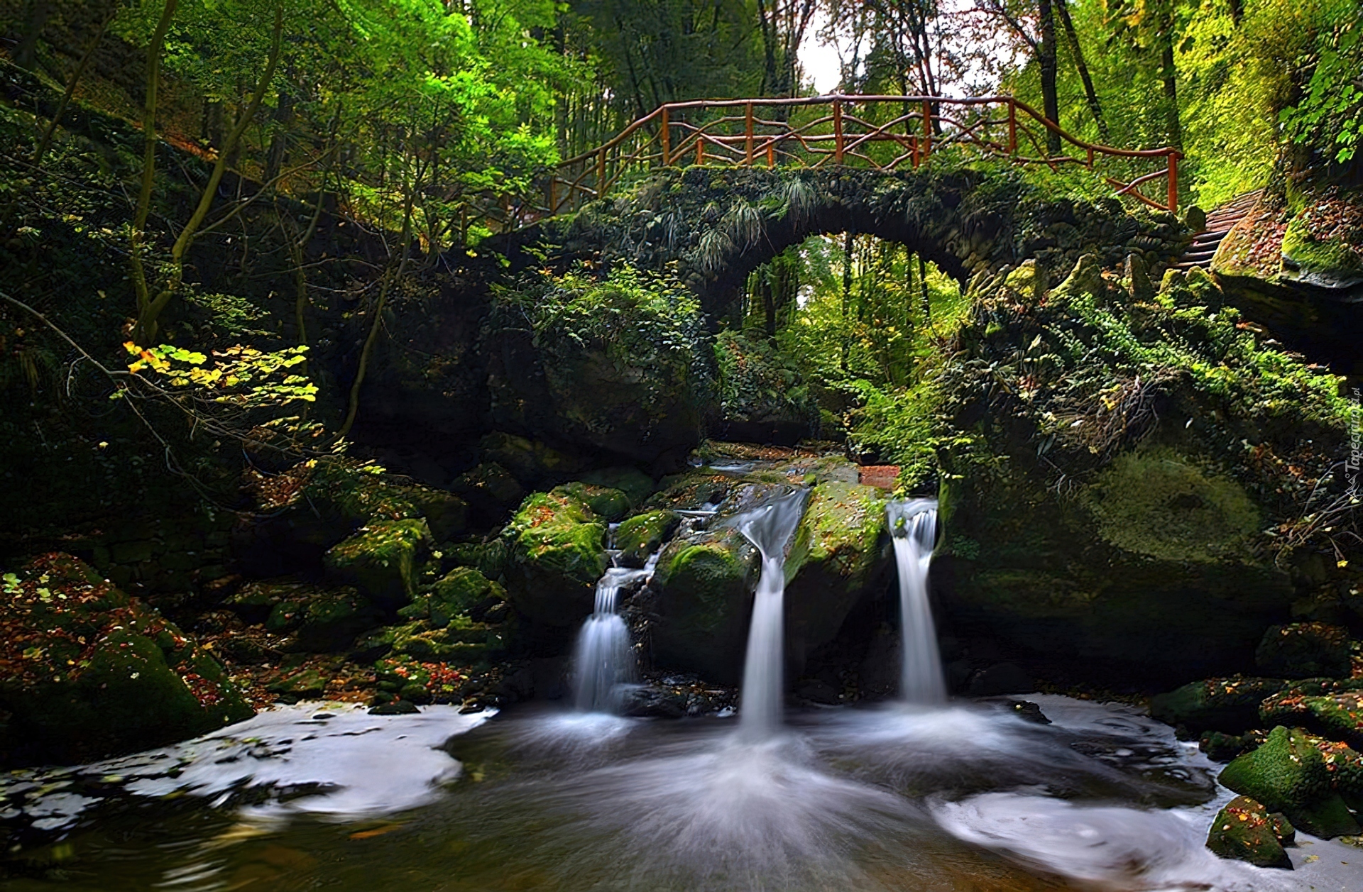 Edytor tapety: Most, Wodospad, Rzeka, Las