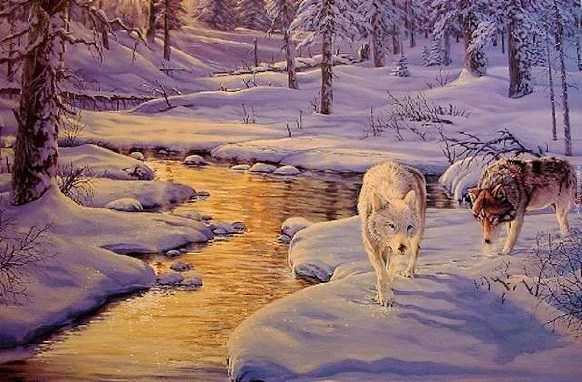 Edytor tapety: Wilki, Las, Zima