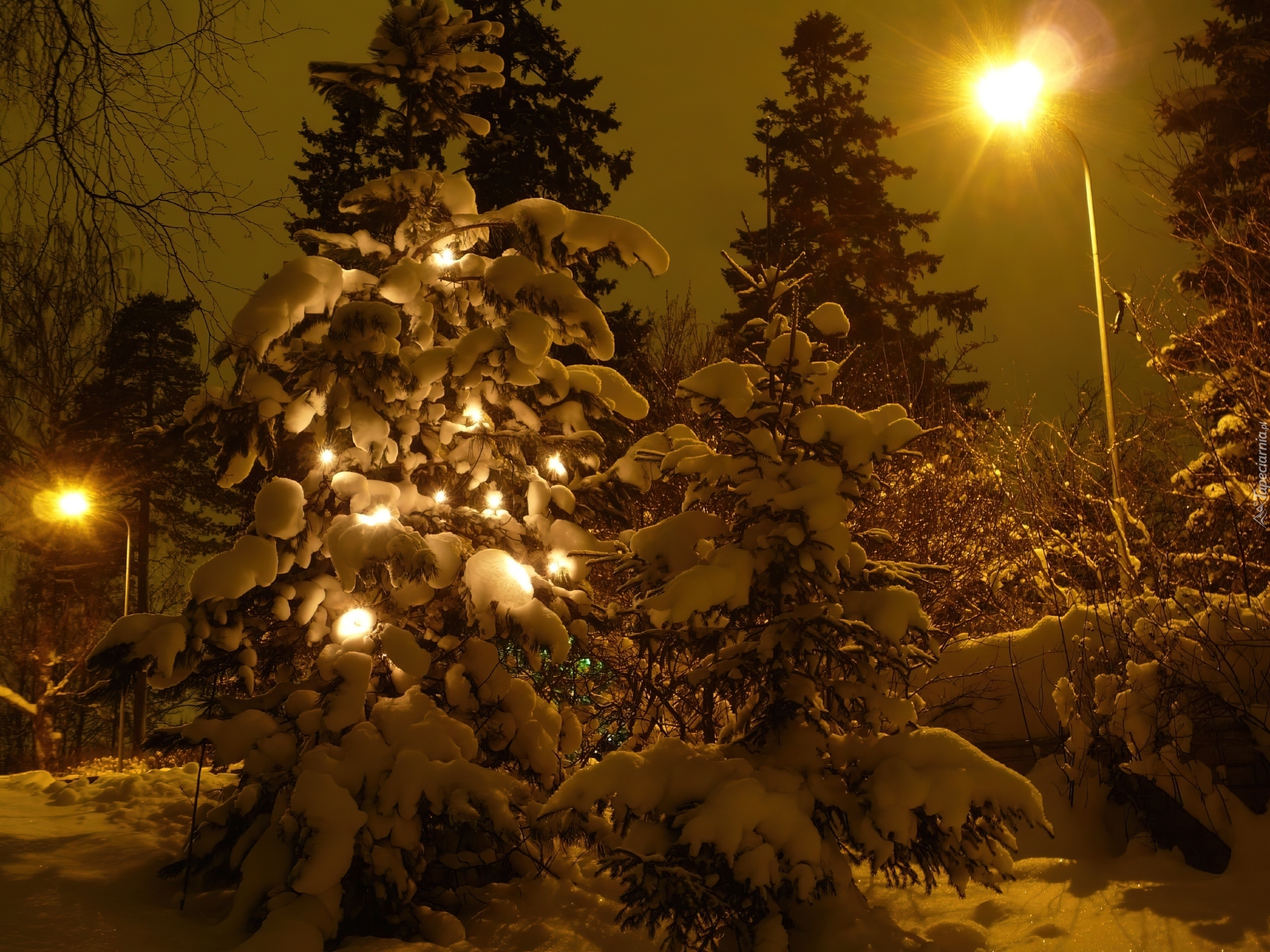 Edytor tapety: Zima, Oświetlone, Drzewko, Noc