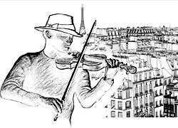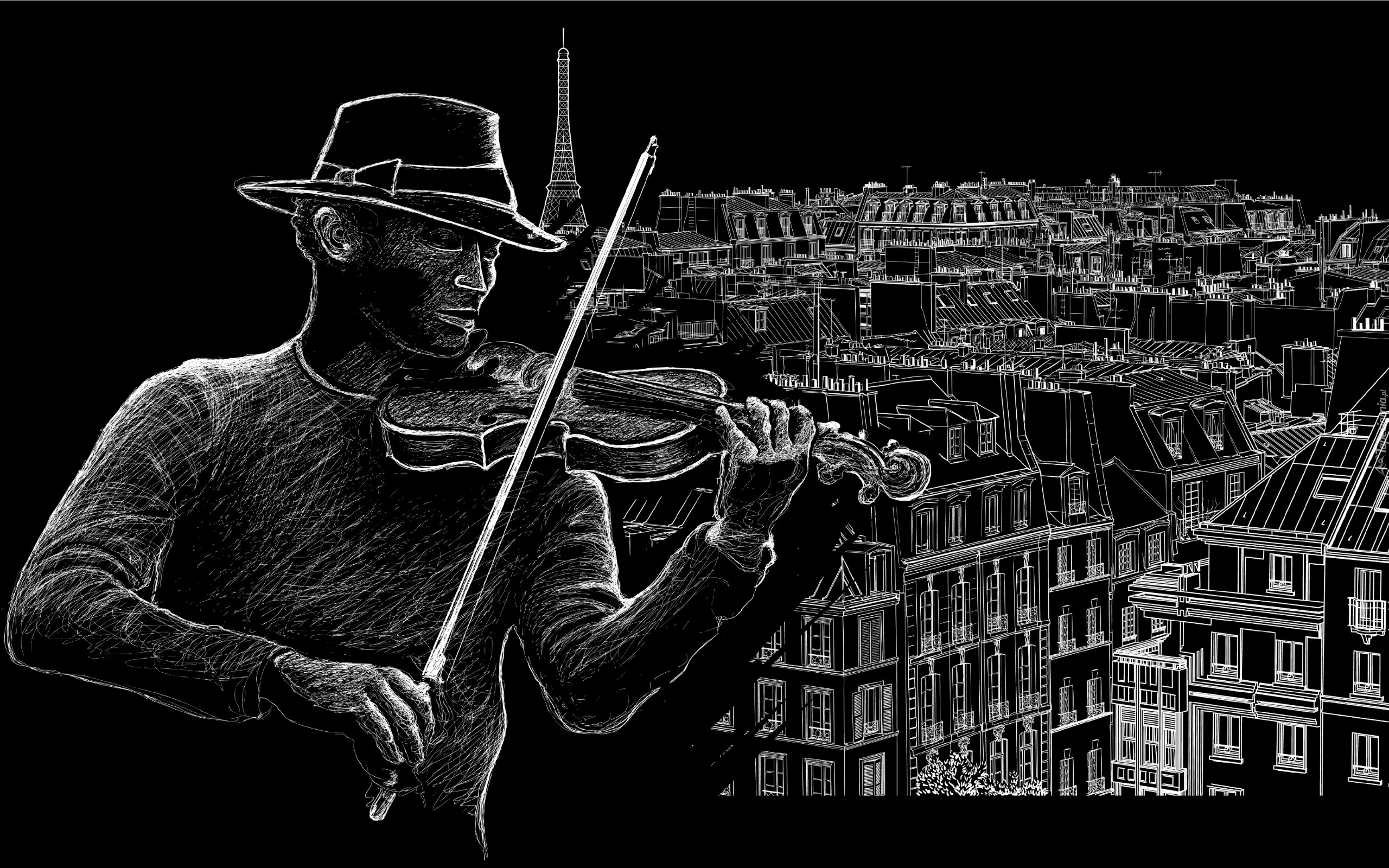 Edytor tapety: Grafika, Mężczyzna, Skrzypce, Panorama, Miasta