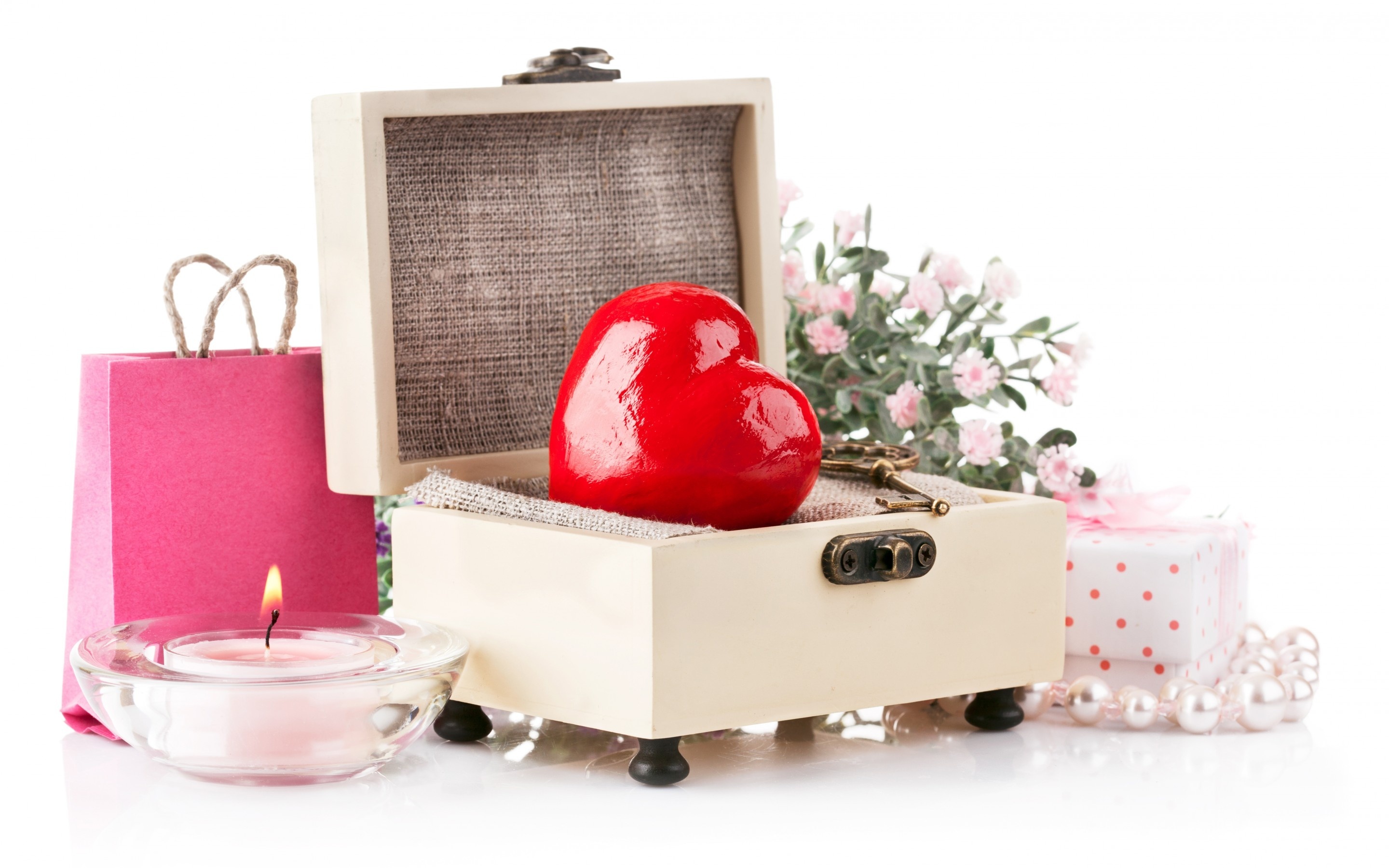 Edytor tapety: Prezenty, Serce, Kwiaty, Świeca, Kompozycja