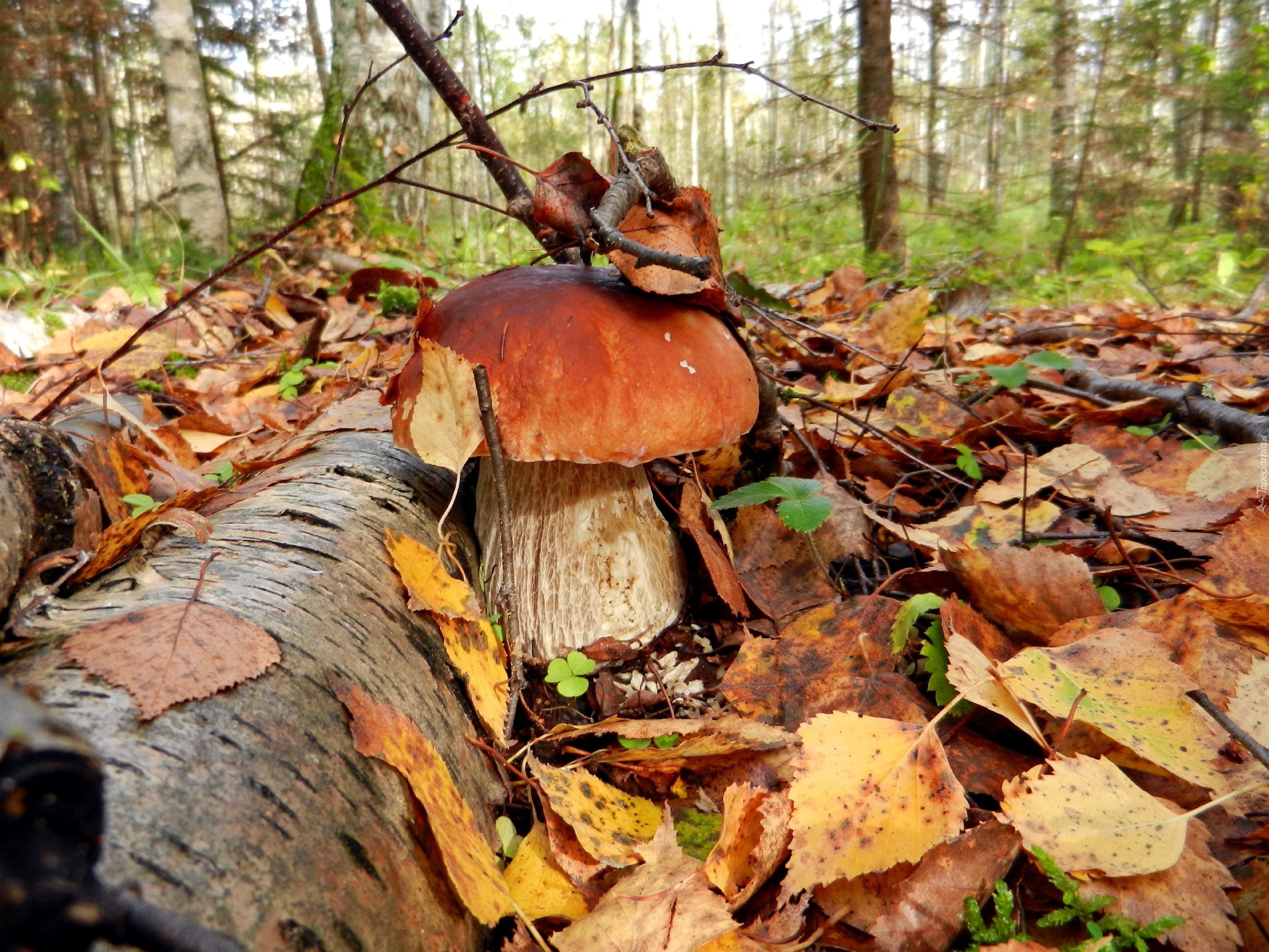 Edytor tapety: Las, Prawdziwek, Liście