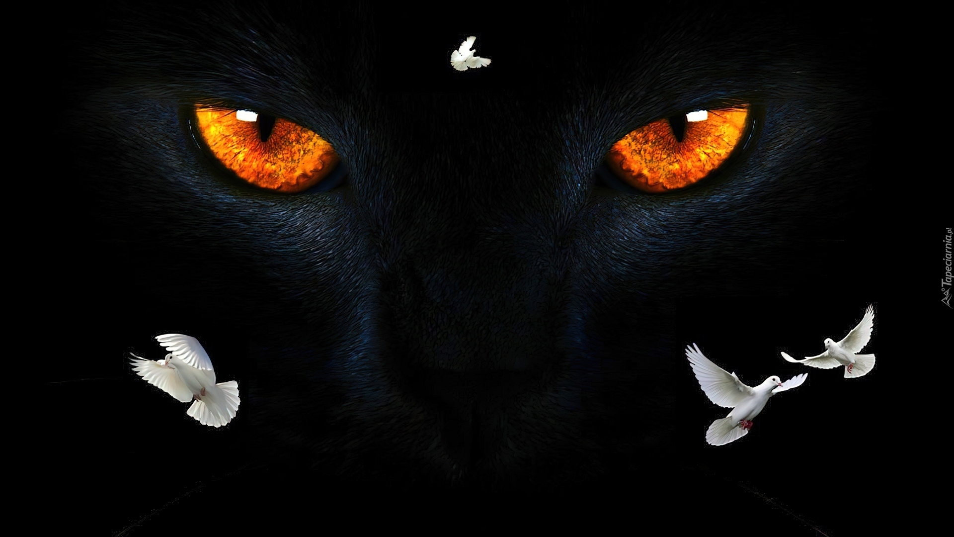 Edytor tapety: Kot, Gołębie