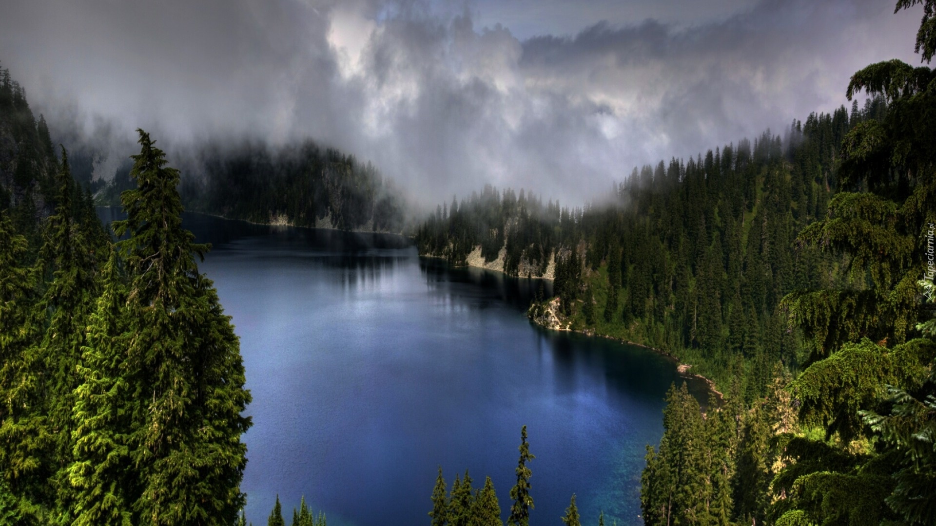 Edytor tapety: Las, Jezioro, Mgła