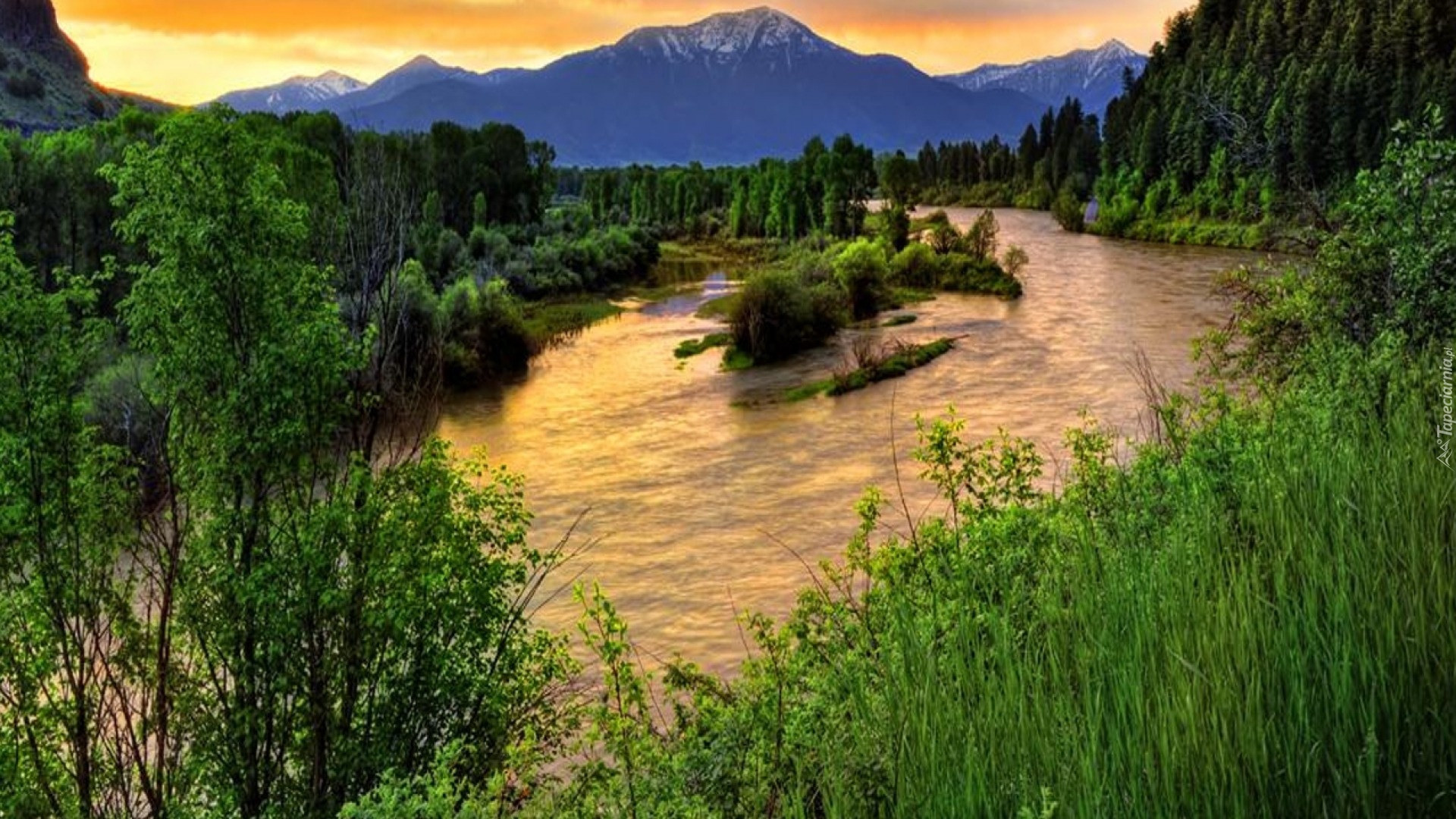 Edytor tapety: Góry, Rzeka, Las, Trawy