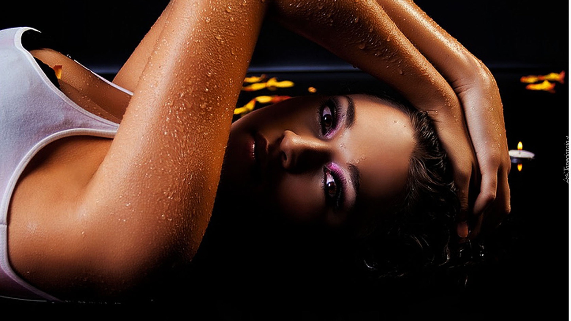 Edytor tapety: Piękna, Dziewczyna, Makijaż, Biała, Koszulka