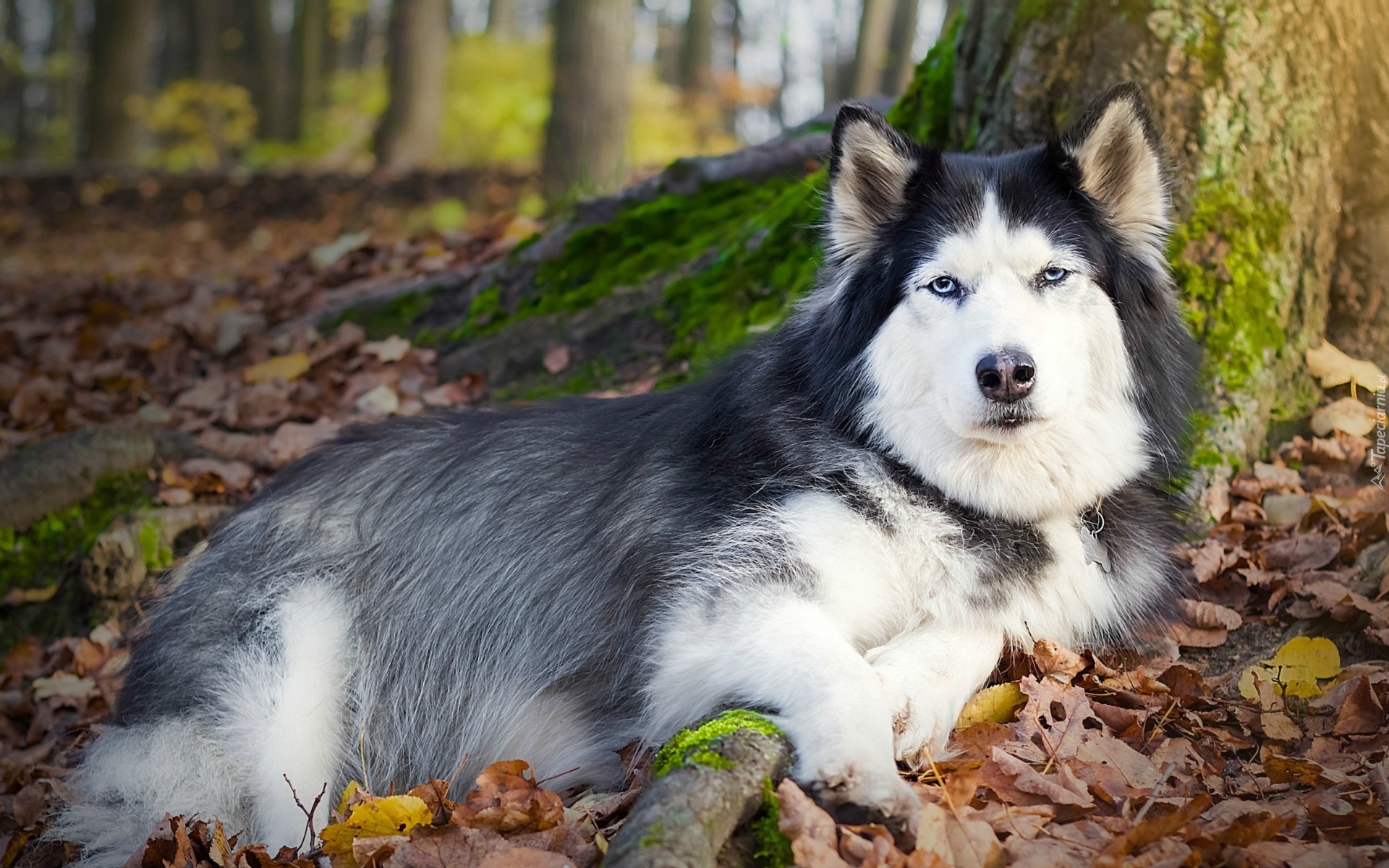 Edytor tapety: Husky, Las, Jesień