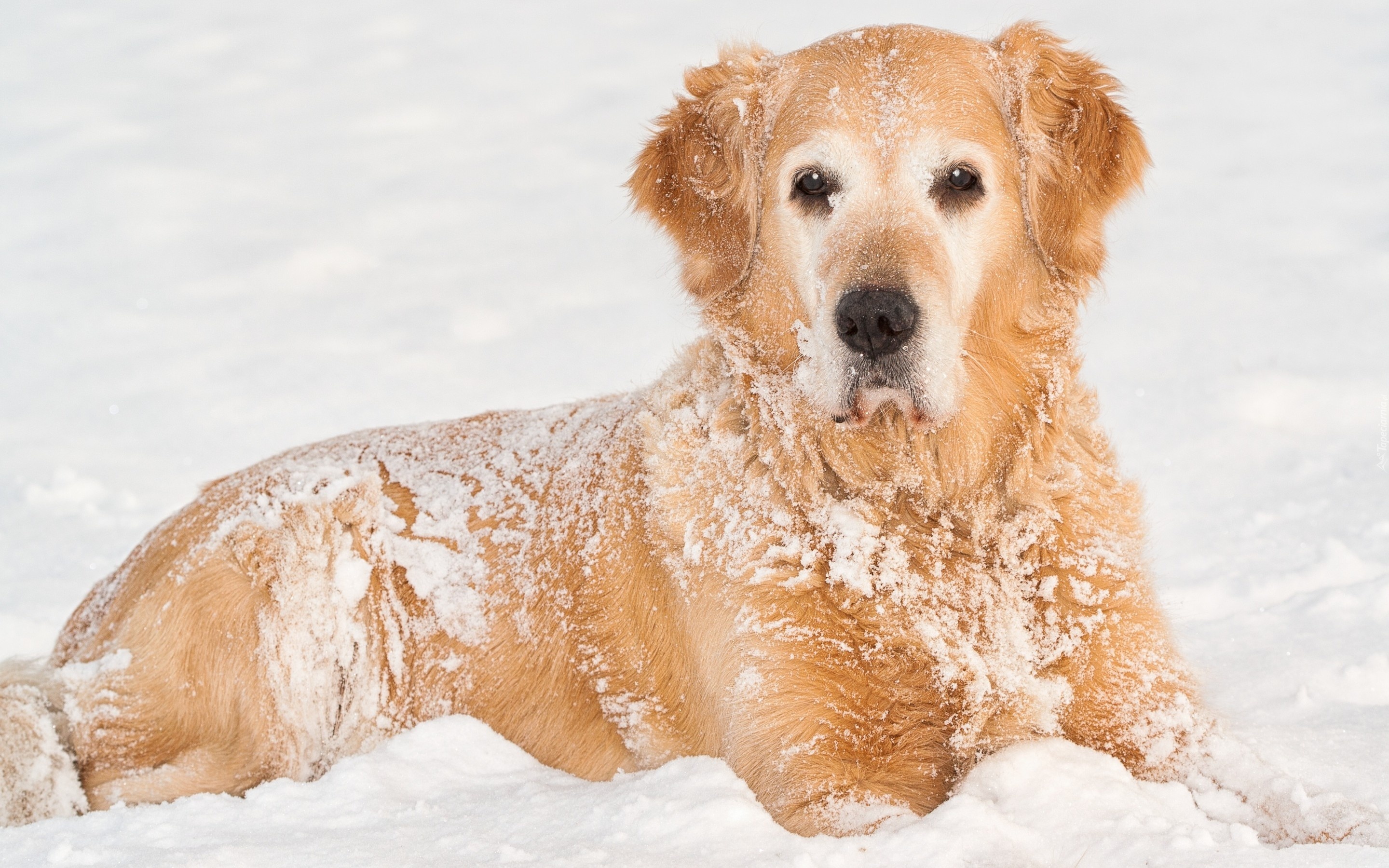 Edytor tapety: Zima, Śnieg, Golden Retriever