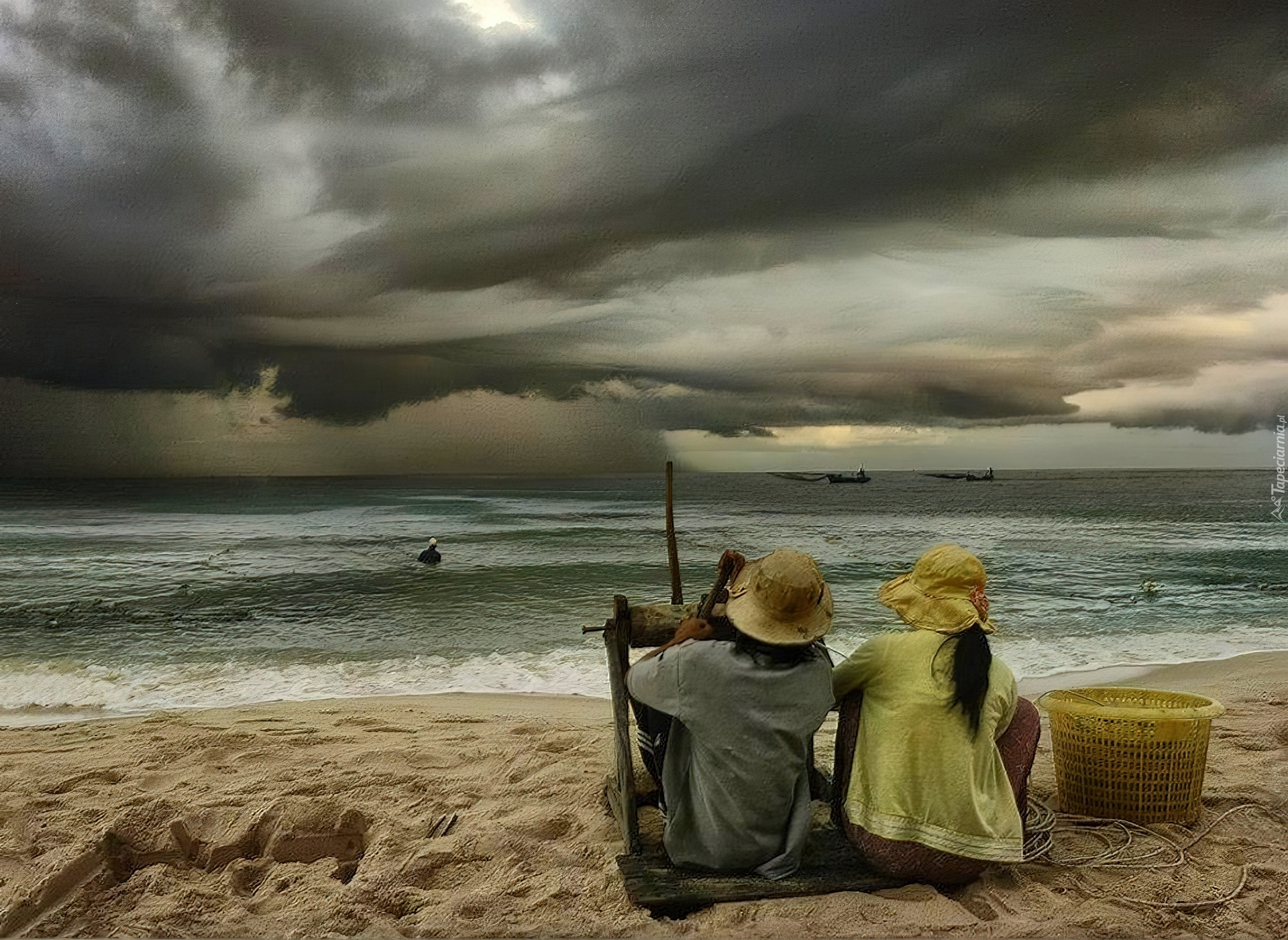 Edytor tapety: Dzieci, Morze, Chmury, Plaża