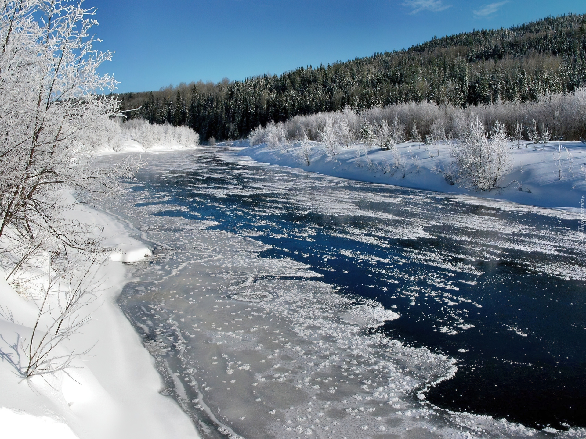 Edytor tapety: Zima, Rzeka, Las