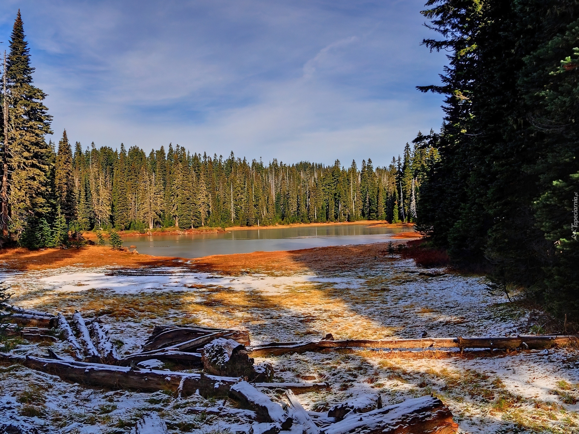 Edytor tapety: Jezioro, Las, Pierwszy, Śnieg