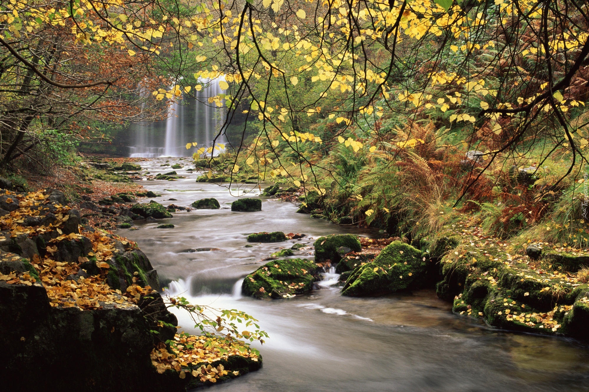Edytor tapety: Jesień, Wodospad, Rzeka, Kamienie