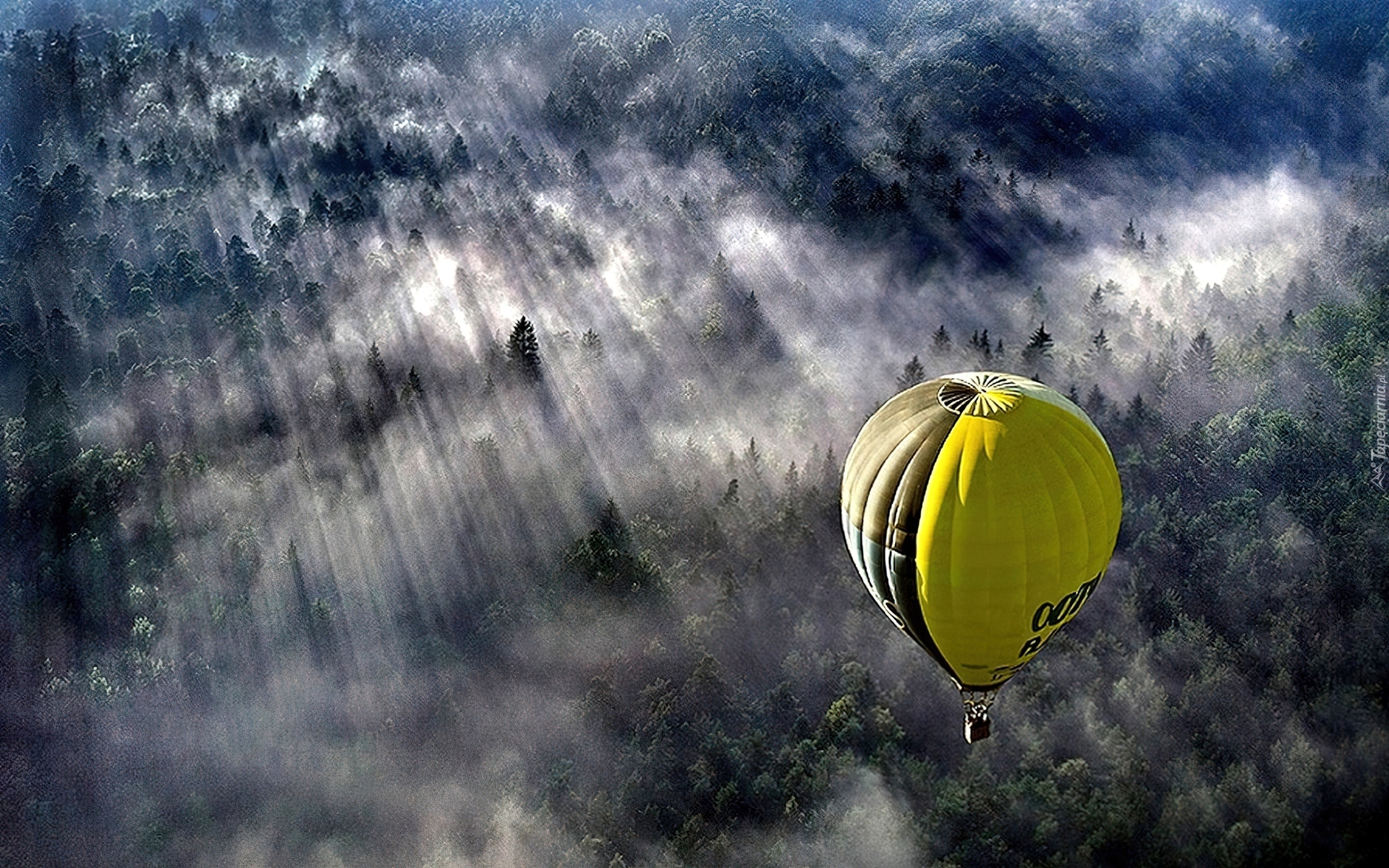Edytor tapety: Balon, Las, Mgła
