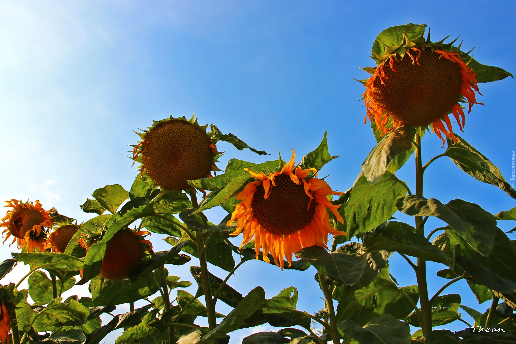 Edytor tapety: Słoneczniki, Błękitne, Niebo