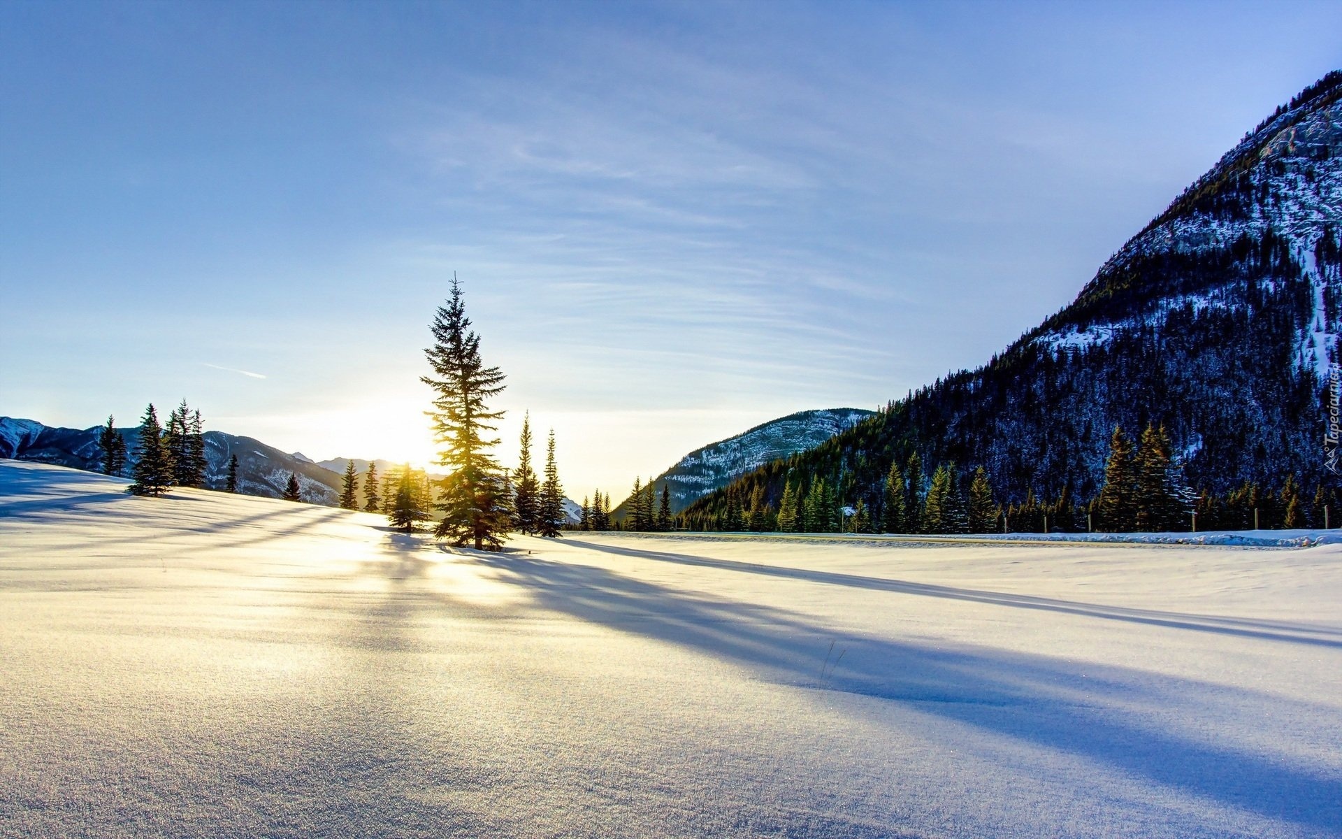 Edytor tapety: Zima, Góry, Wschód, Słońca