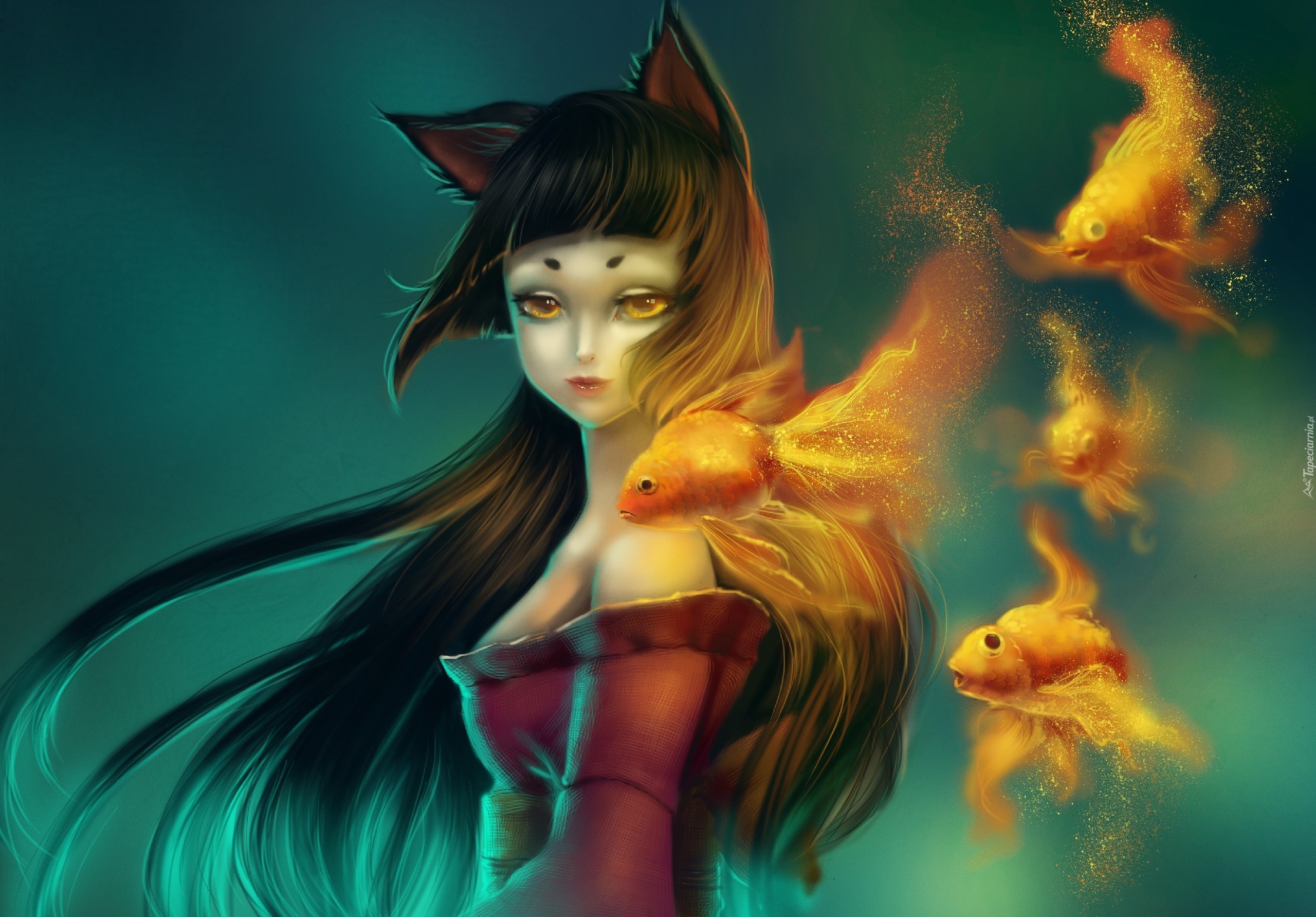 Edytor tapety: Dziewczyna, Lis, Rybki