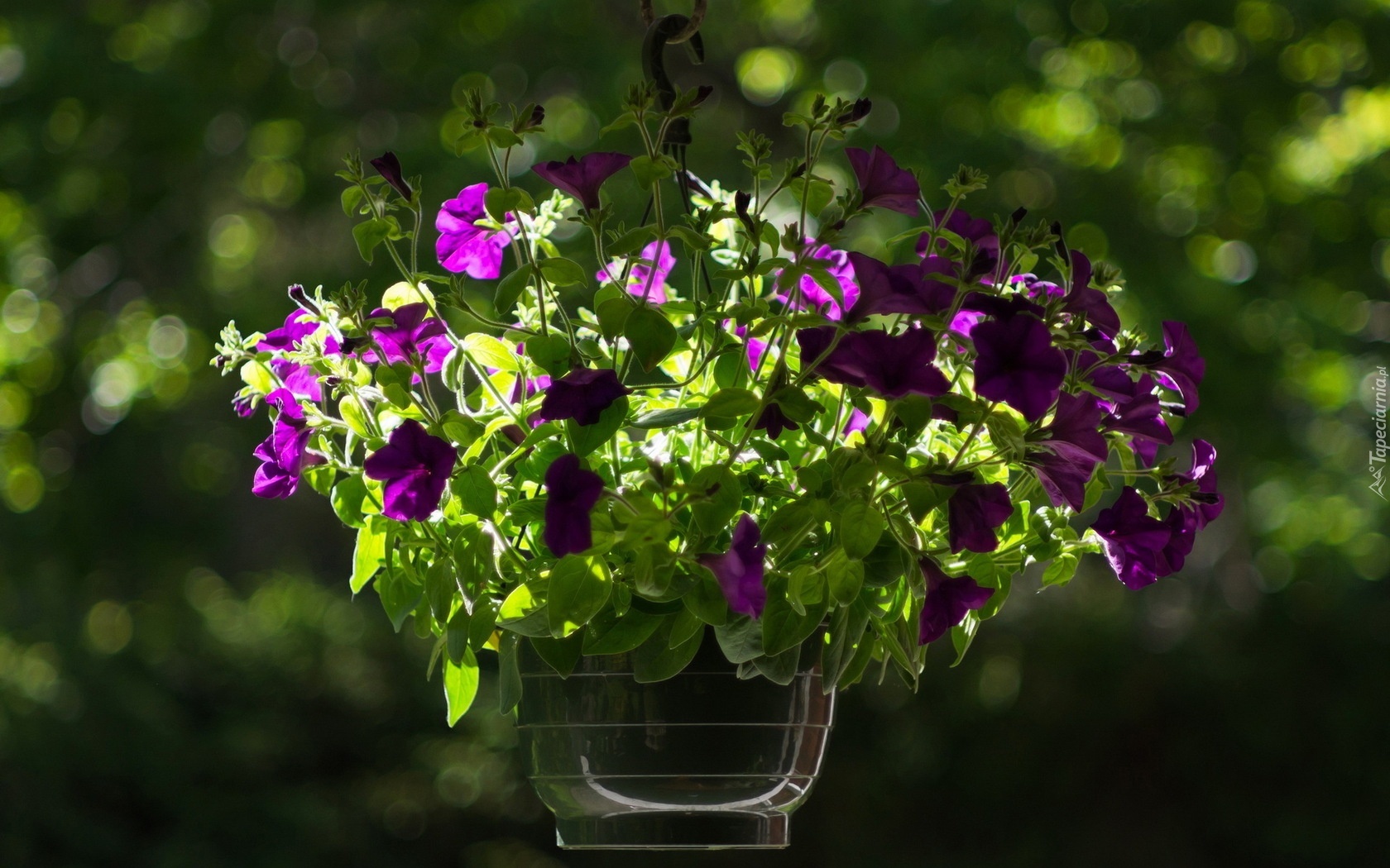 Edytor tapety: Fioletowe, Kwiatuszki, Zielone, Listki, Wazonik