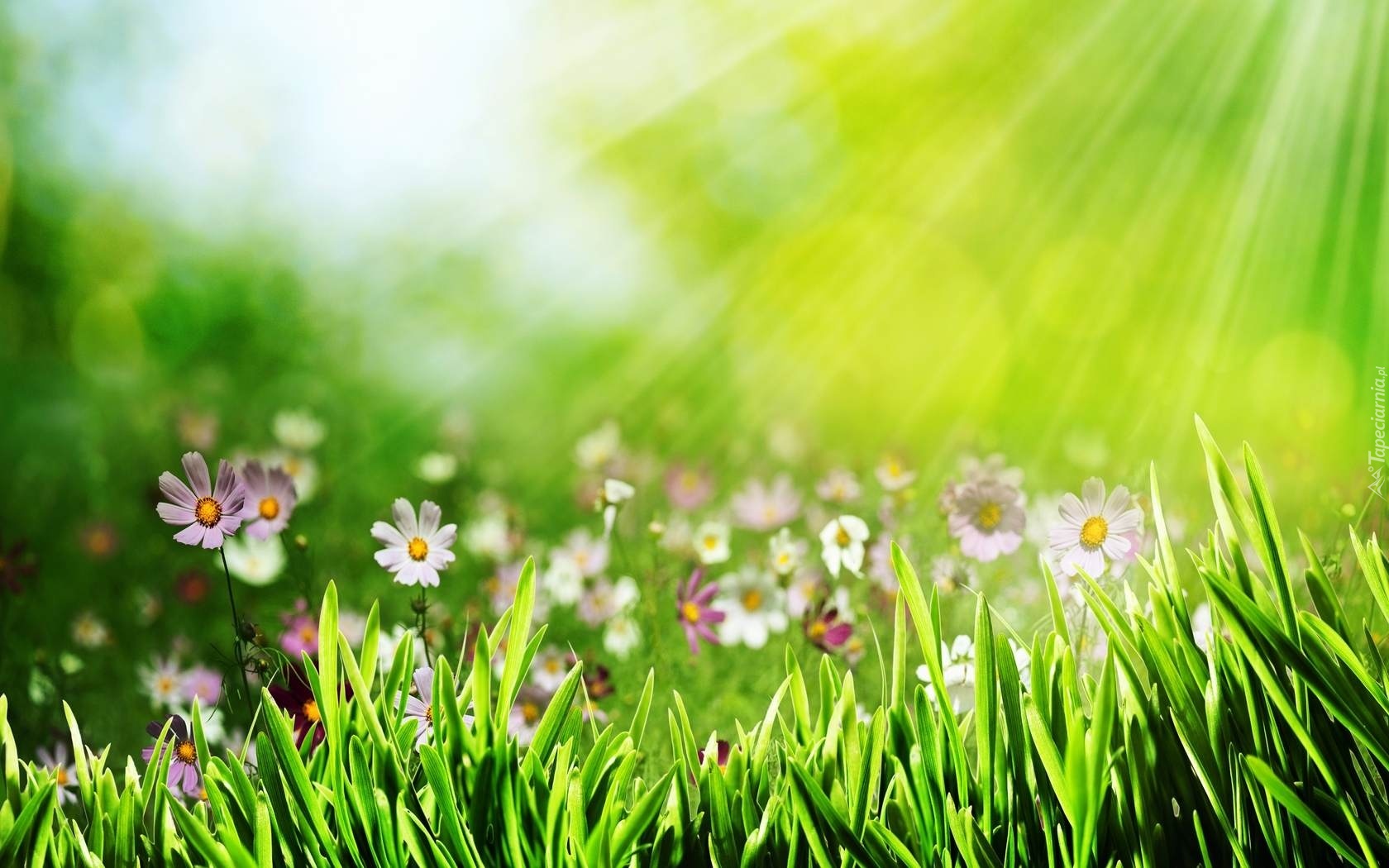 Edytor tapety: Kosmea, Trawa, Promienie słońca