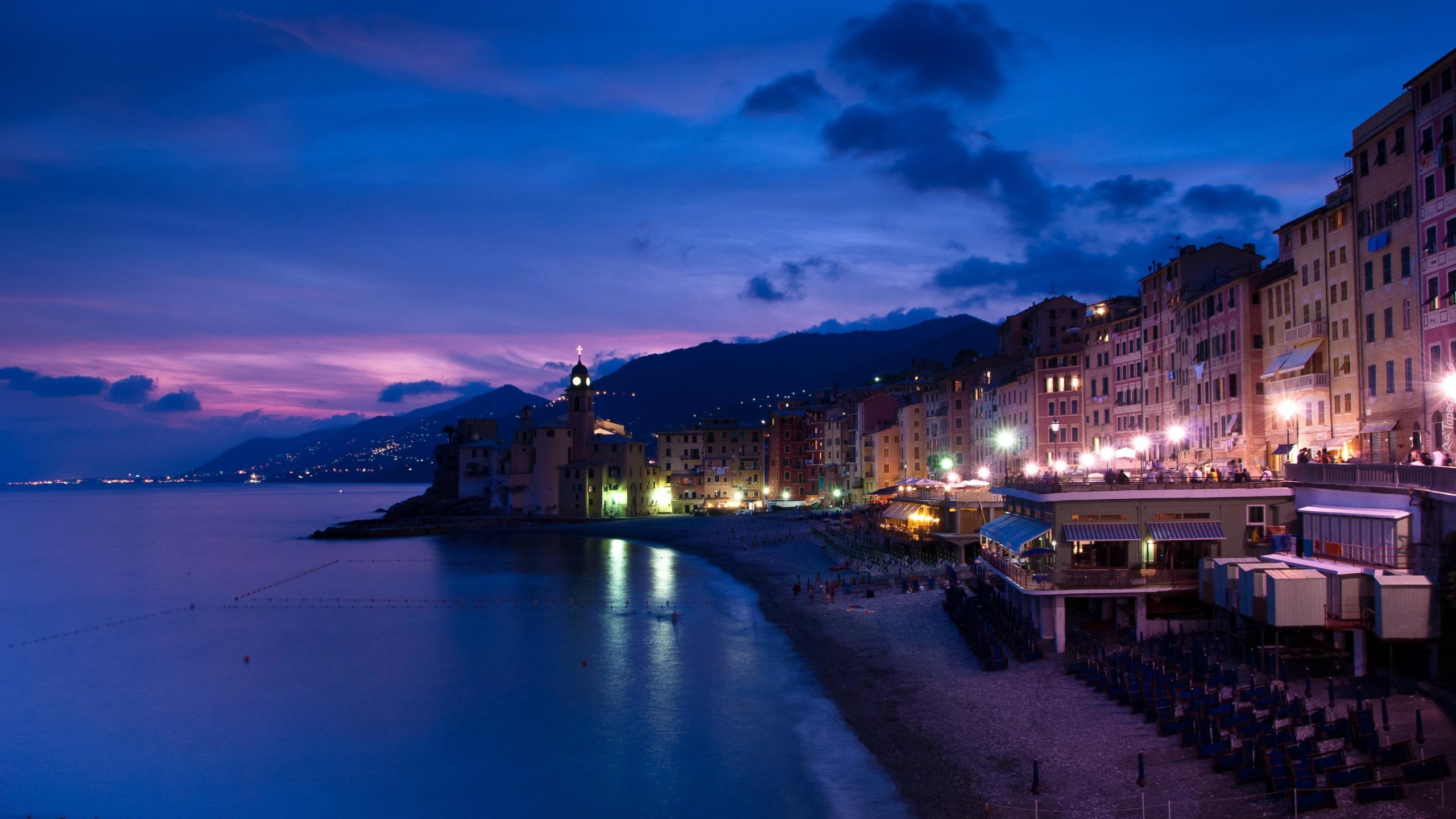 Edytor tapety: Wybrzeże, Morze, Miasto, Noc