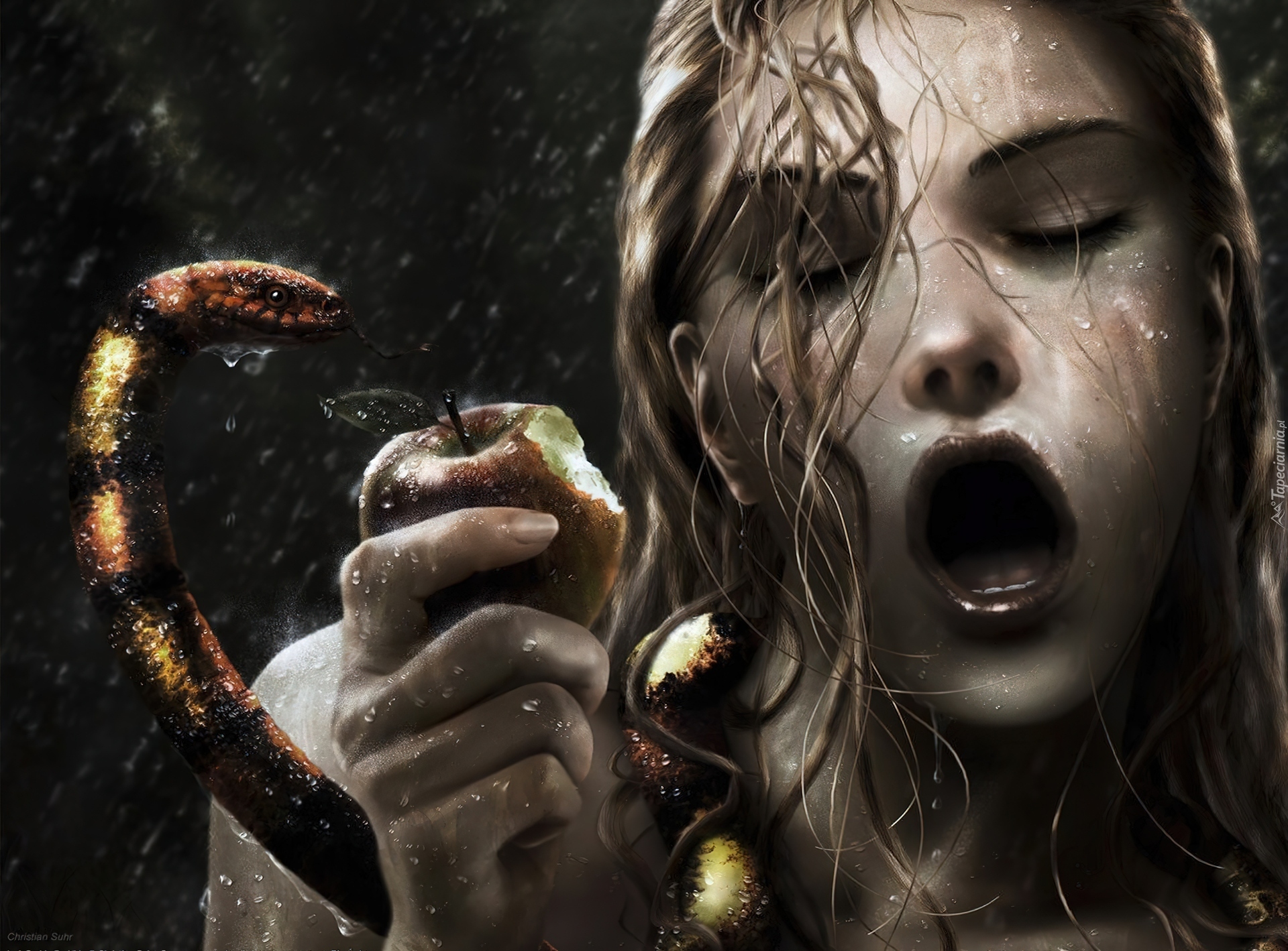 Edytor tapety: Kobieta, Jabłko, Wąż, Ewa