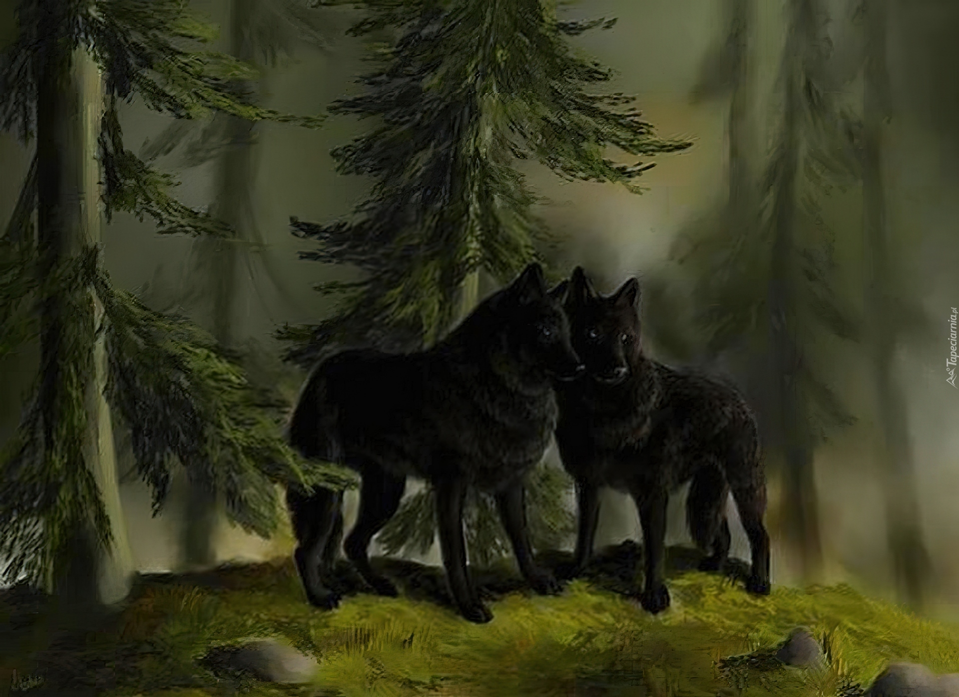 Edytor tapety: Wilki, Las