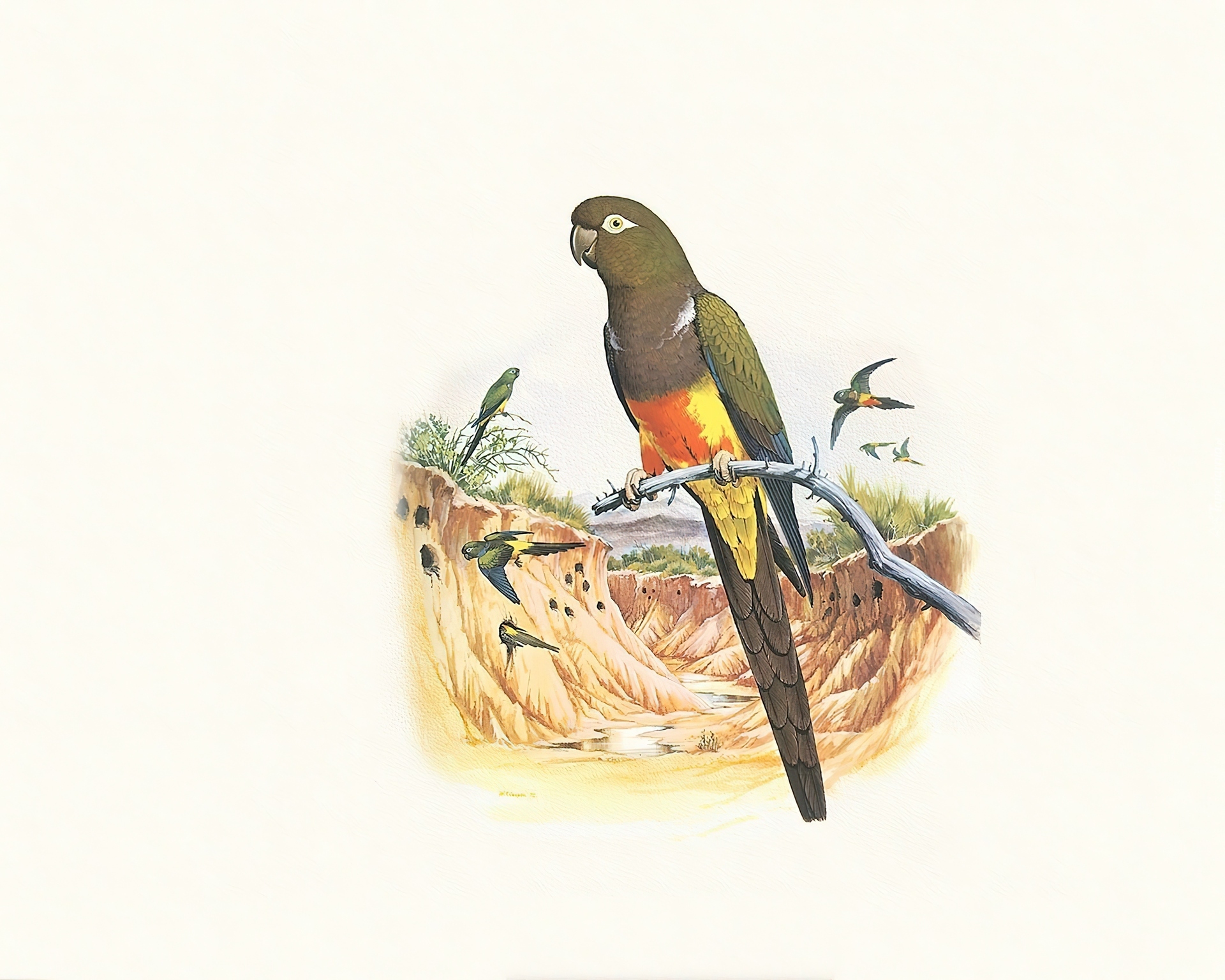 Edytor tapety: Brązowe, Papugi, Gałązka, Edward Lear