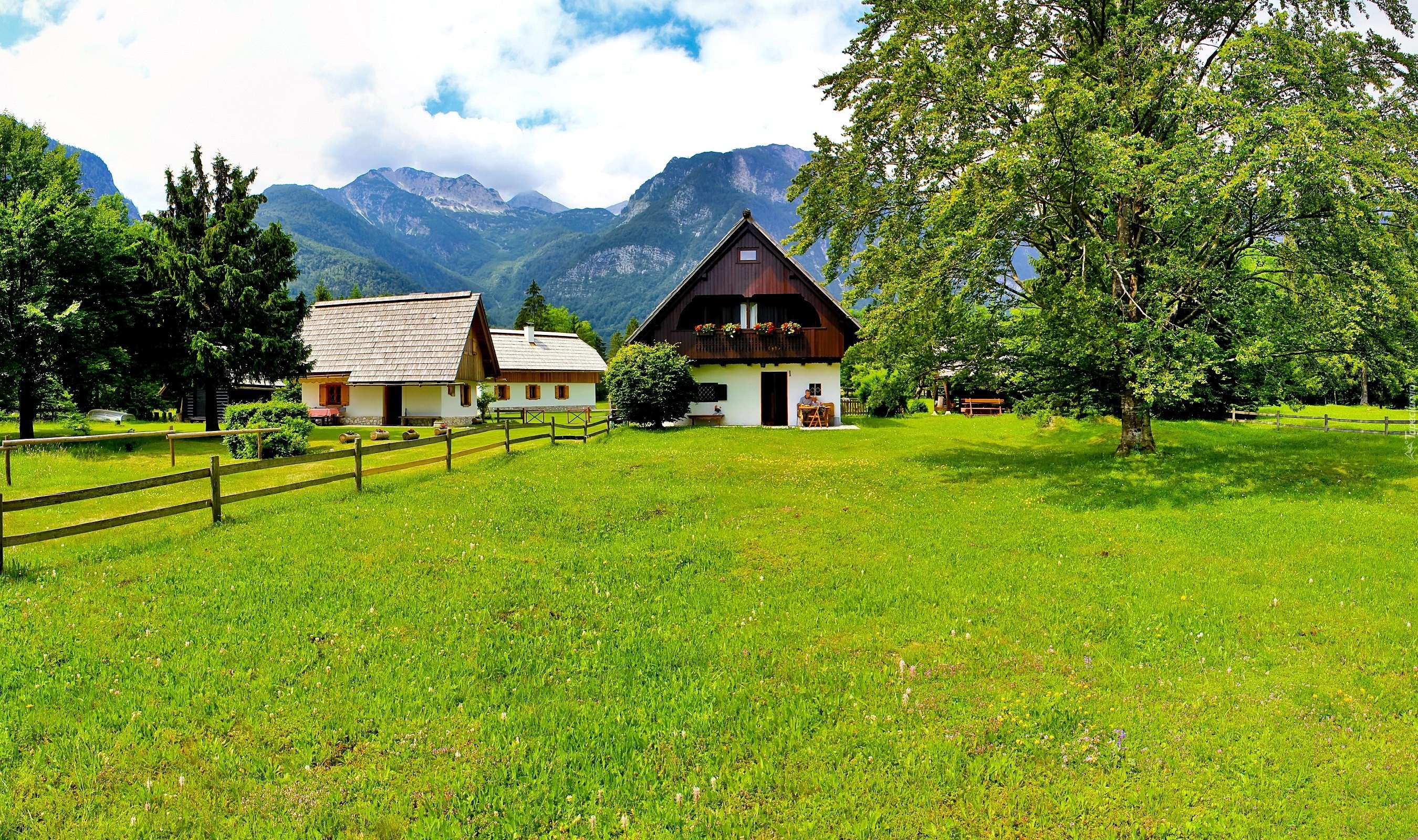 Edytor tapety: Dom, W, Górach, Posesja, Zieleń
