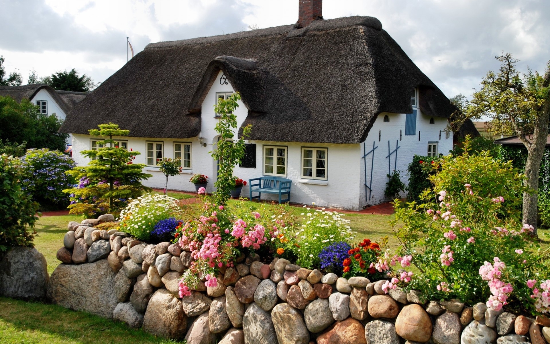 Edytor tapety: Wiejski, Domek, Ogródek, Kamienne, Ogrodzenie