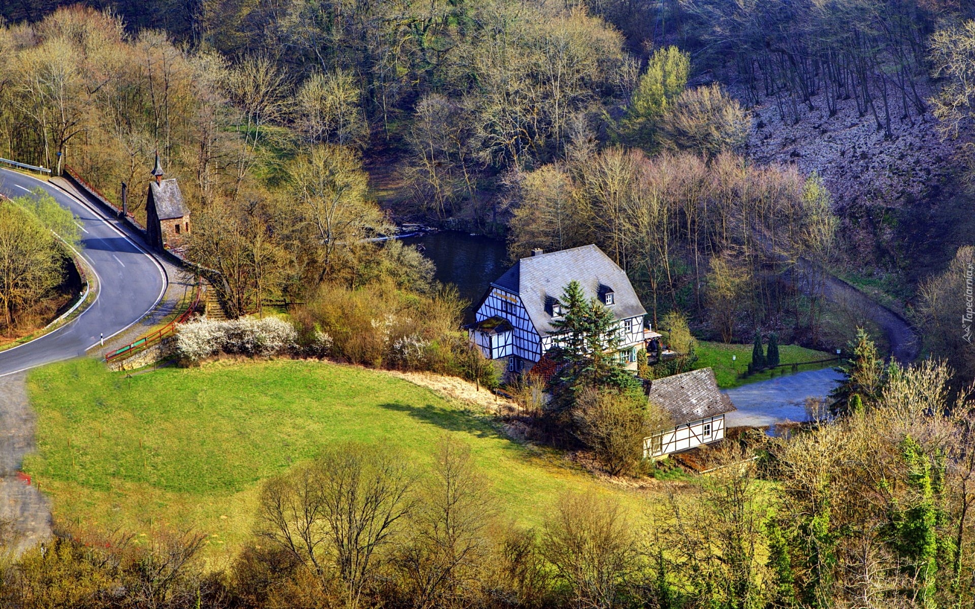 Edytor tapety: Jesień, Droga, Las, Dom