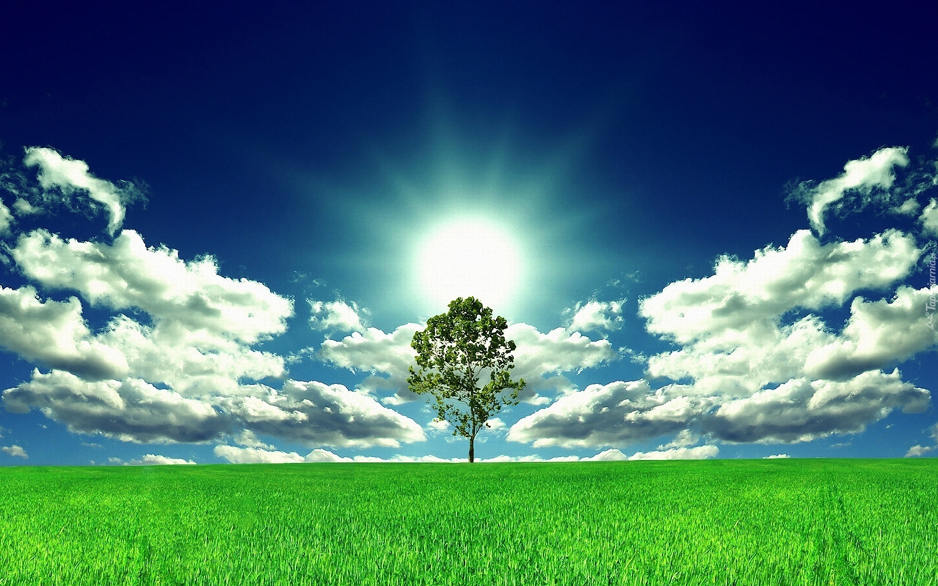 Edytor tapety: Trawa, Chmury, Słońce, Drzewo