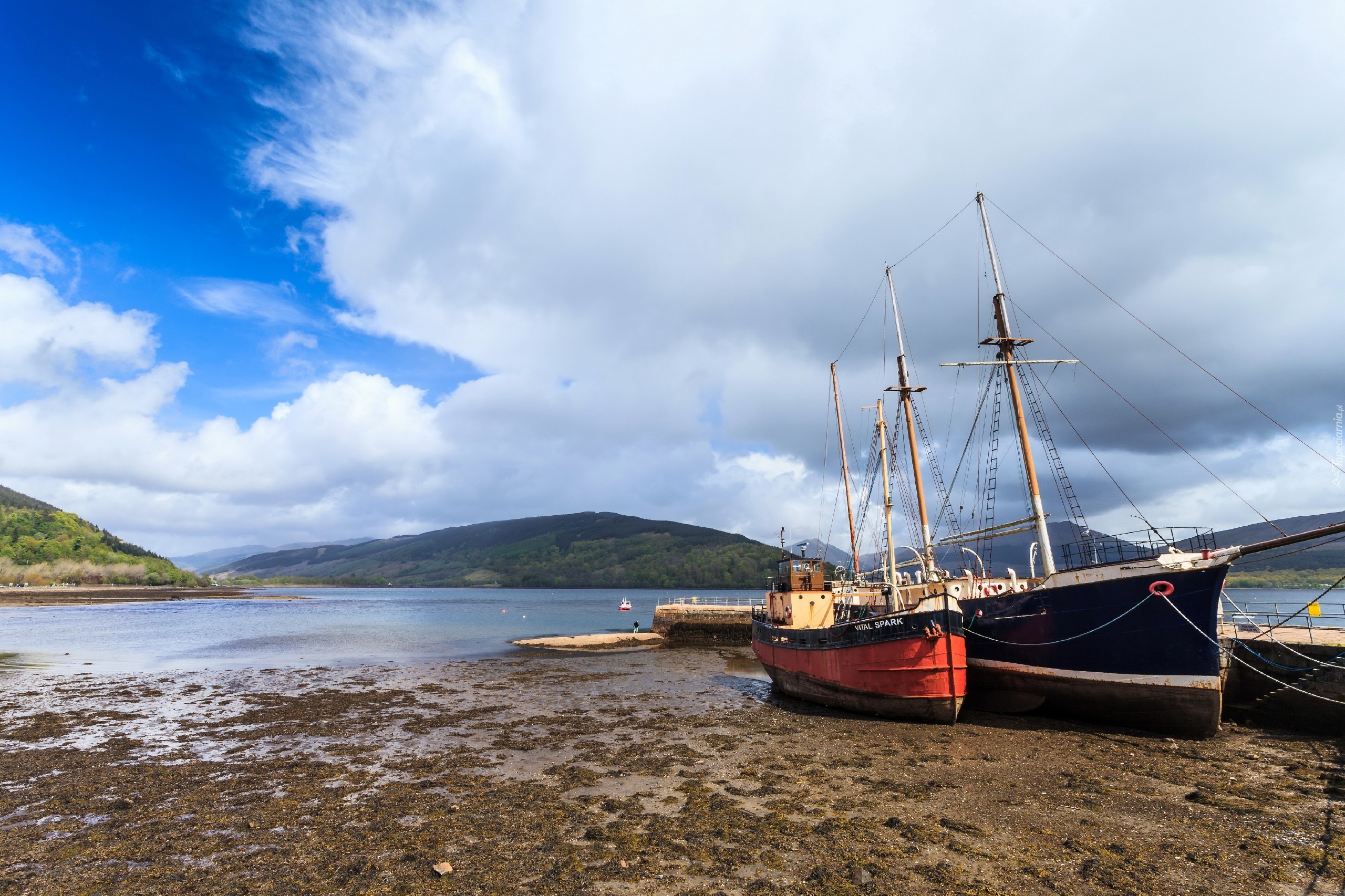 Edytor tapety: Rzeka, Góry, Chmury